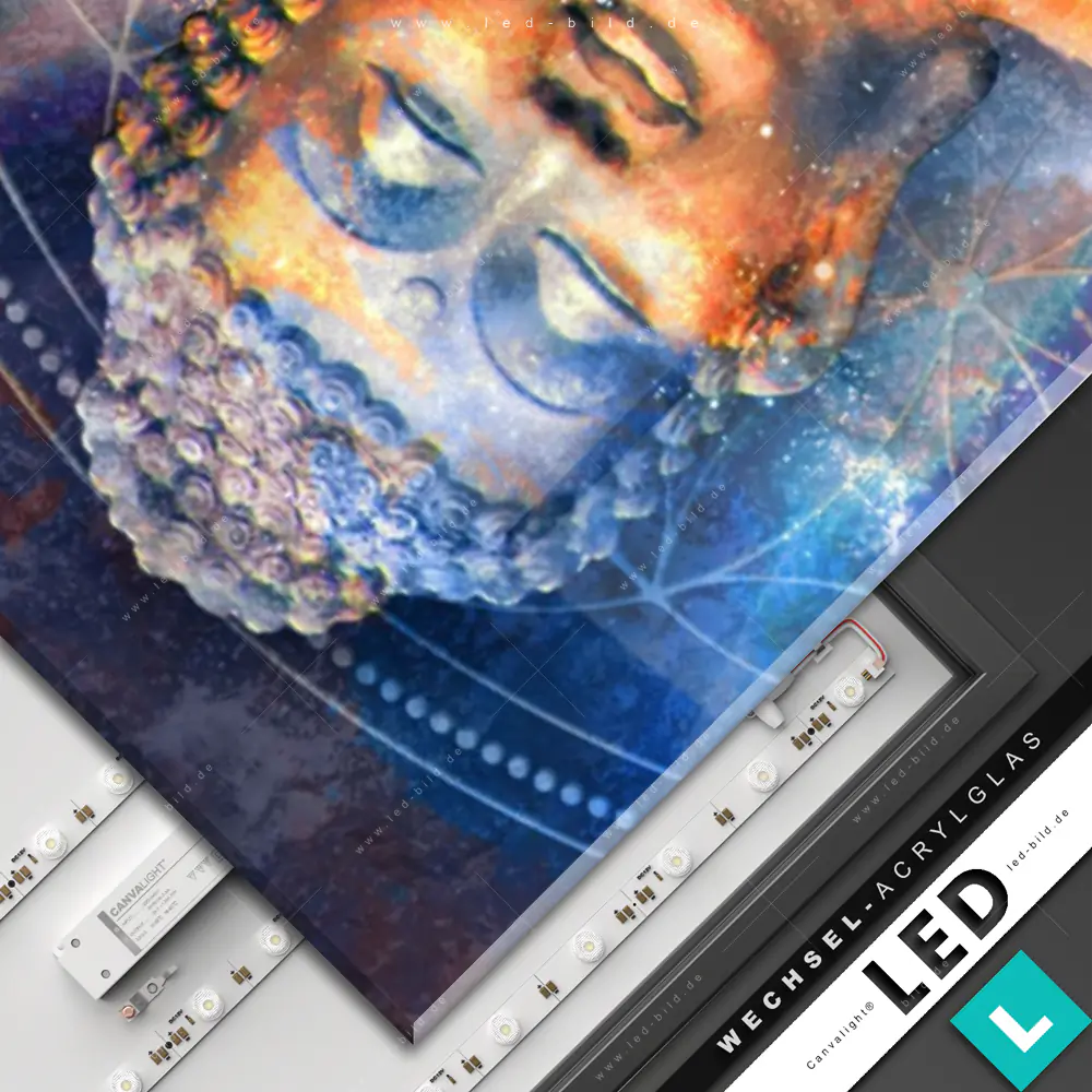 Canvalight® Wechsel-Acrylglas | Buddha in Meditation | Schmal