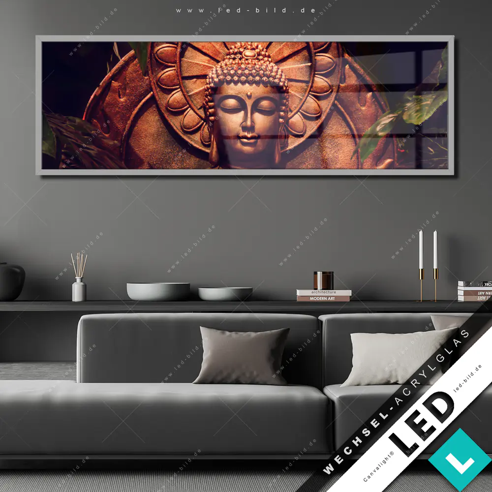Canvalight® Wechsel-Acrylglas | Buddha & Lotusblüte | Panorama