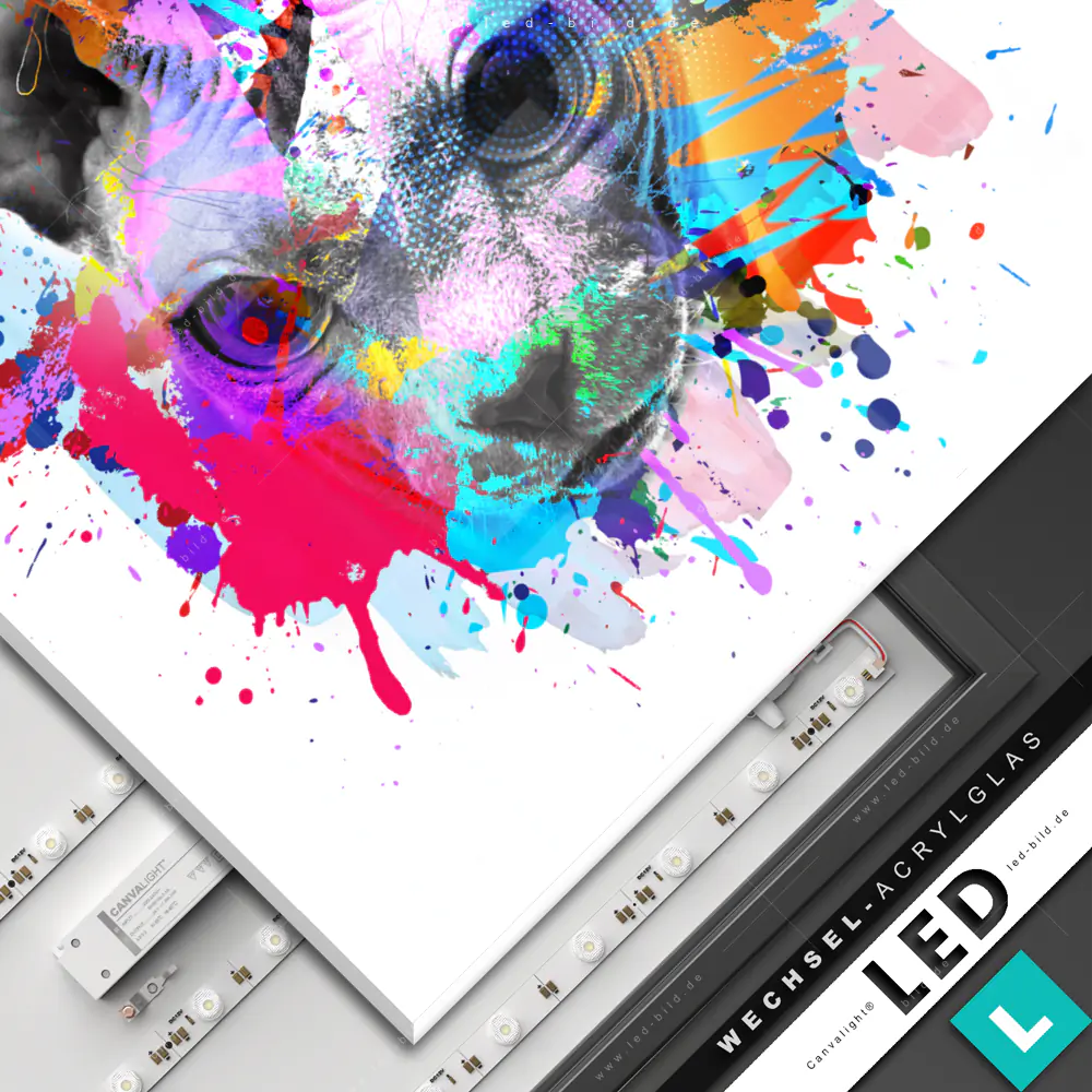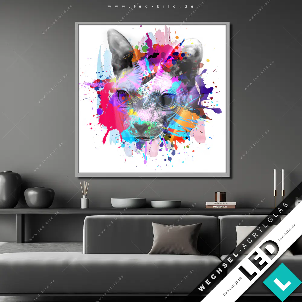 Canvalight® Wechsel-Acrylglas | Bunte Sphynx Weiß | Quadrat