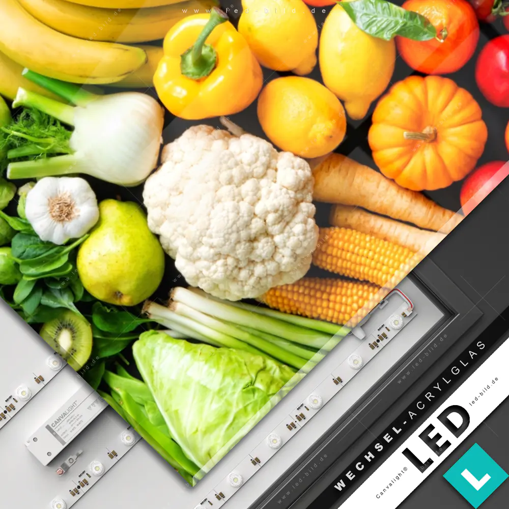 Canvalight® Wechsel-Acrylglas | Bunte Vielfalt frischer Früchte | Hochformat