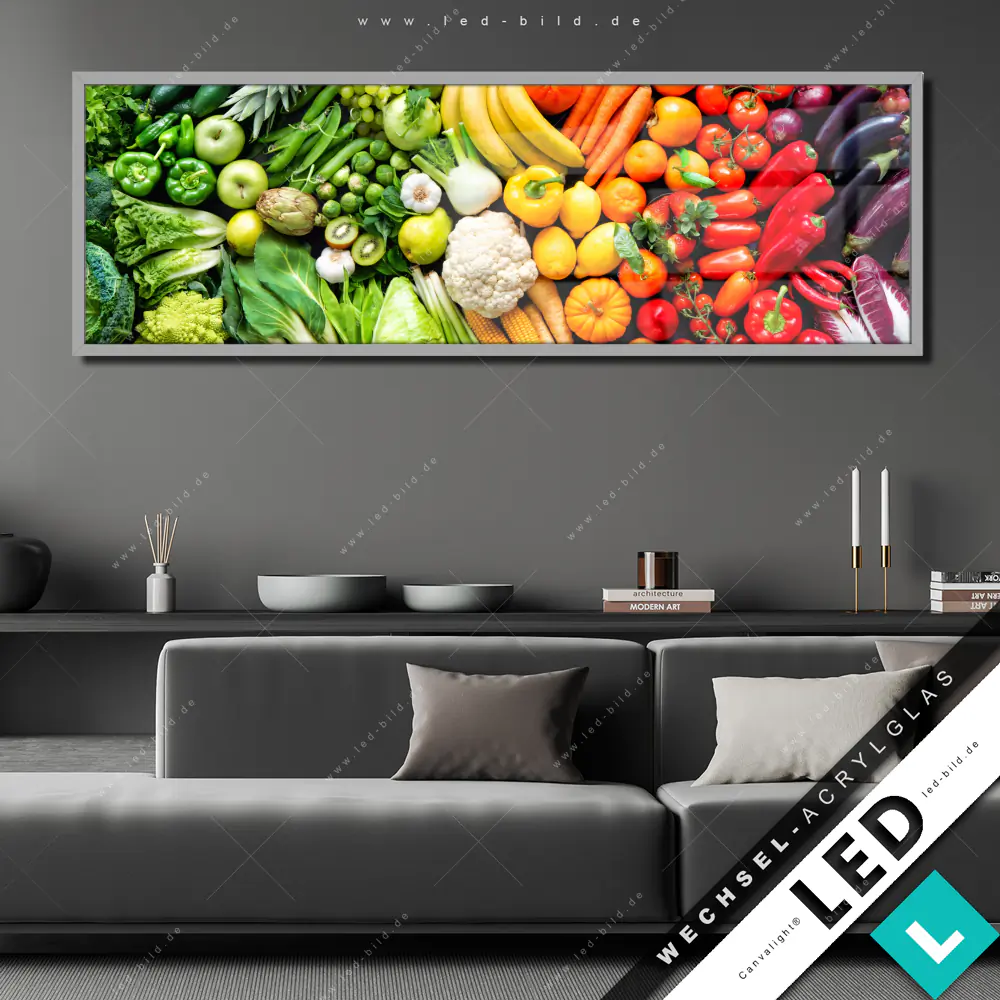 Canvalight® Wechsel-Acrylglas | Bunte Vielfalt frischer Früchte | Panorama