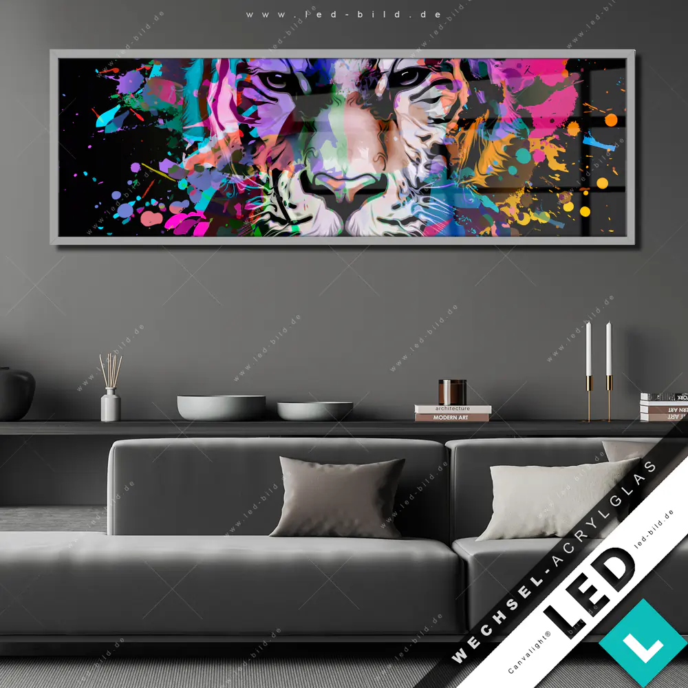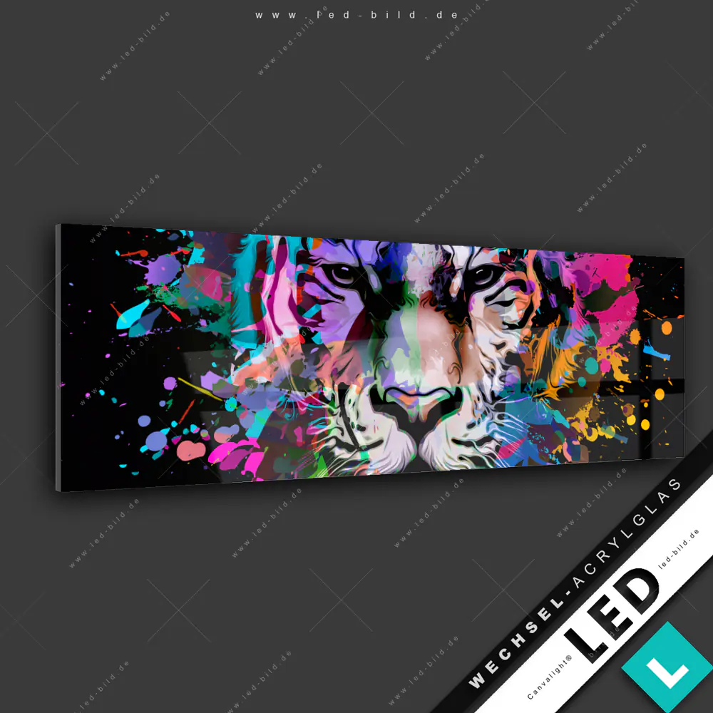 Canvalight® Wechsel-Acrylglas | Bunter Tiger Schwarz | Panorama