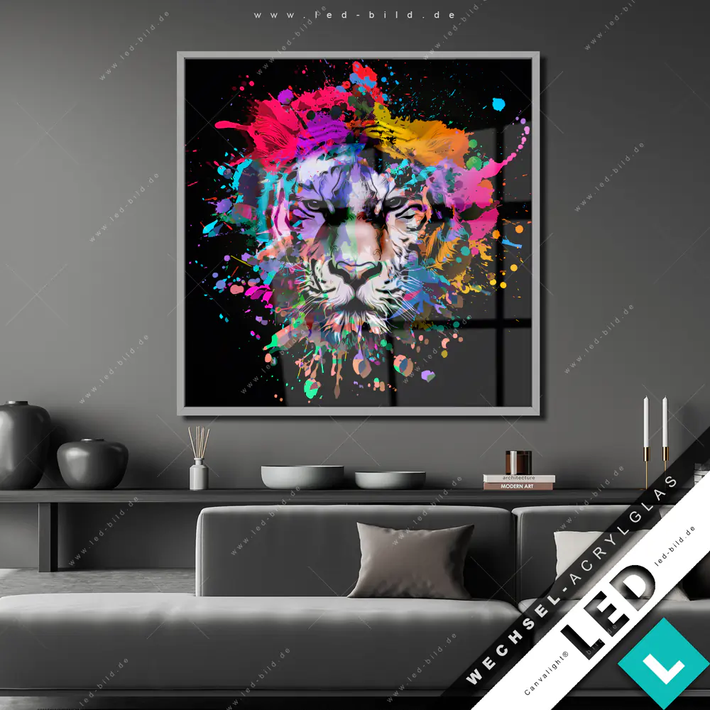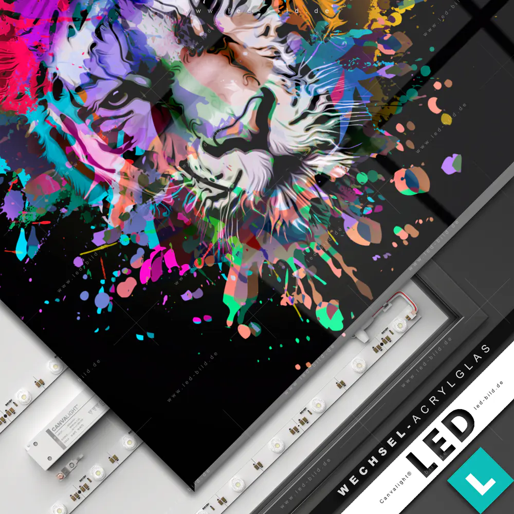 Canvalight® Wechsel-Acrylglas | Bunter Tiger Schwarz | Quadrat