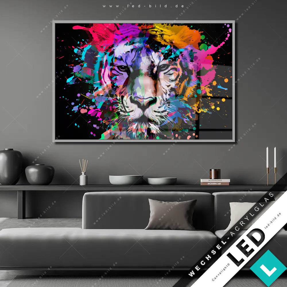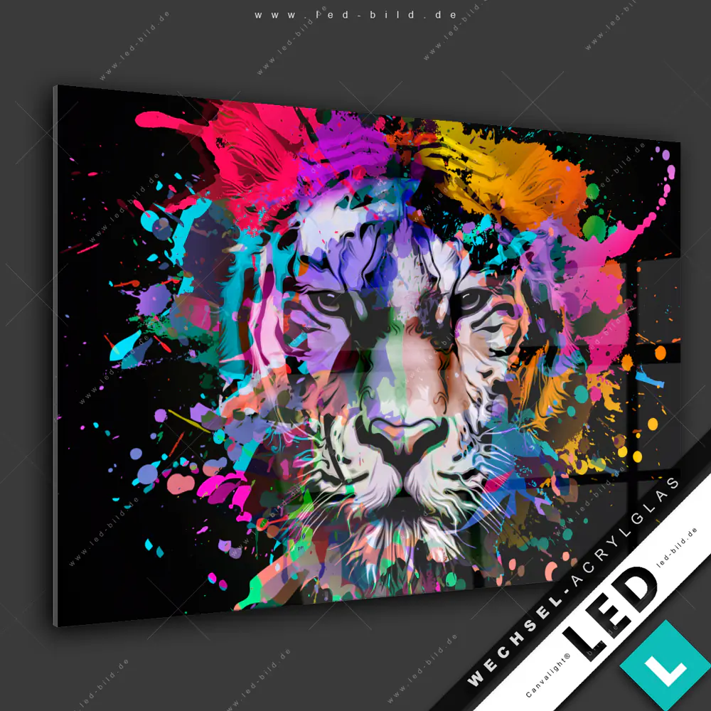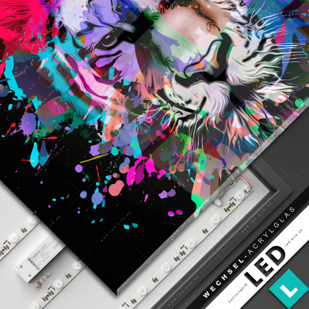 Canvalight® Wechsel-Acrylglas | Bunter Tiger Schwarz | Querformat