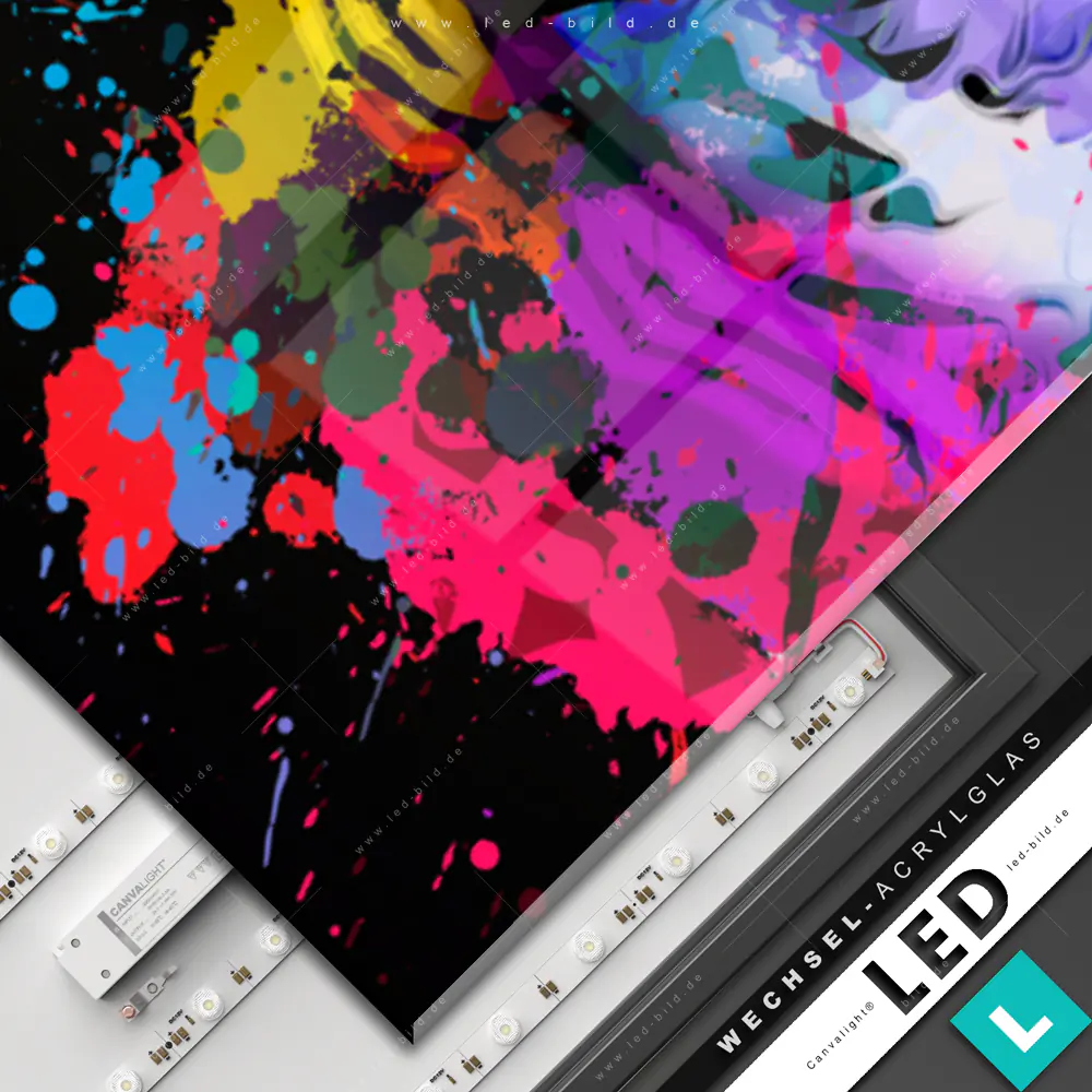 Canvalight® Wechsel-Acrylglas | Bunter Tiger Schwarz | Schmal