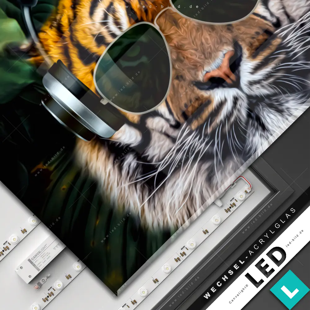 Canvalight® Wechsel-Acrylglas | Cooler Tiger | Querformat