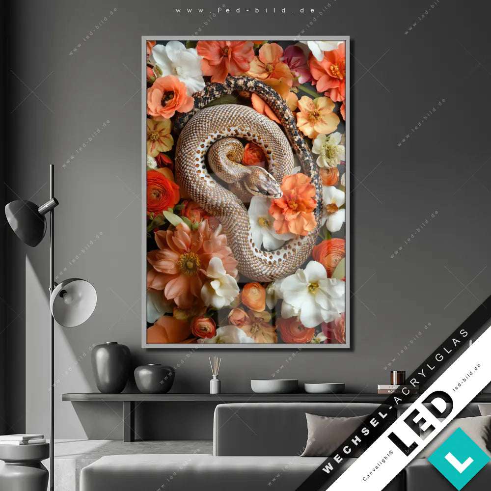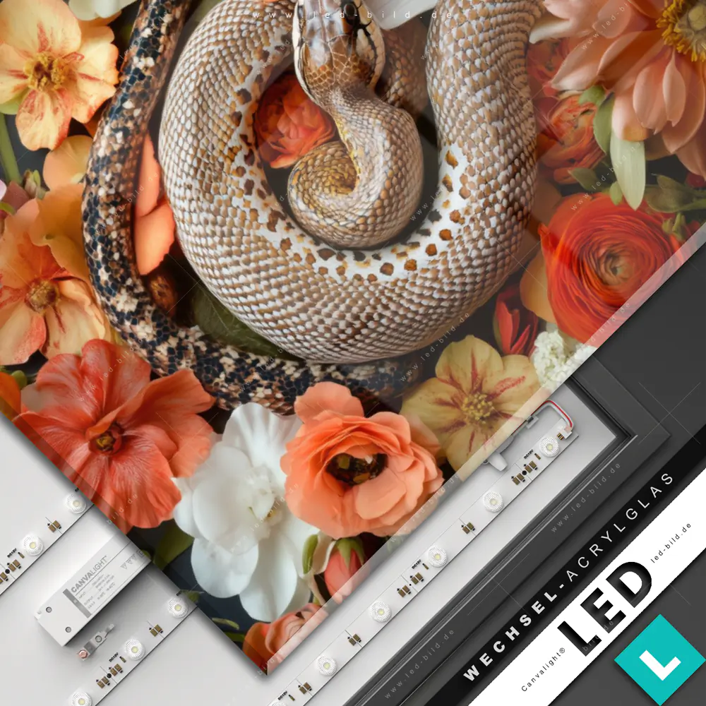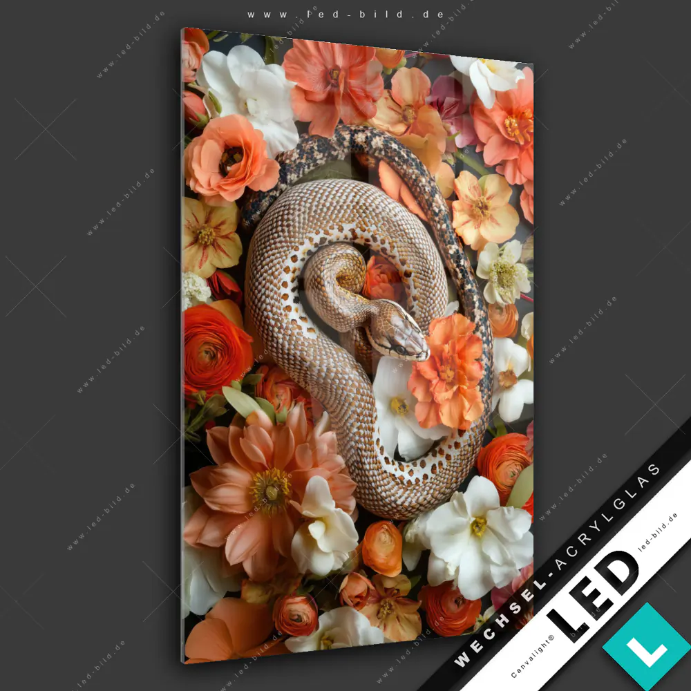 Canvalight® Wechsel-Acrylglas | Die Schlange - Verführerische Tarnung | Hochformat