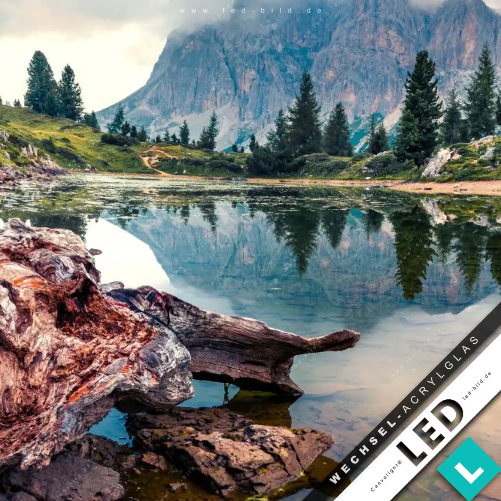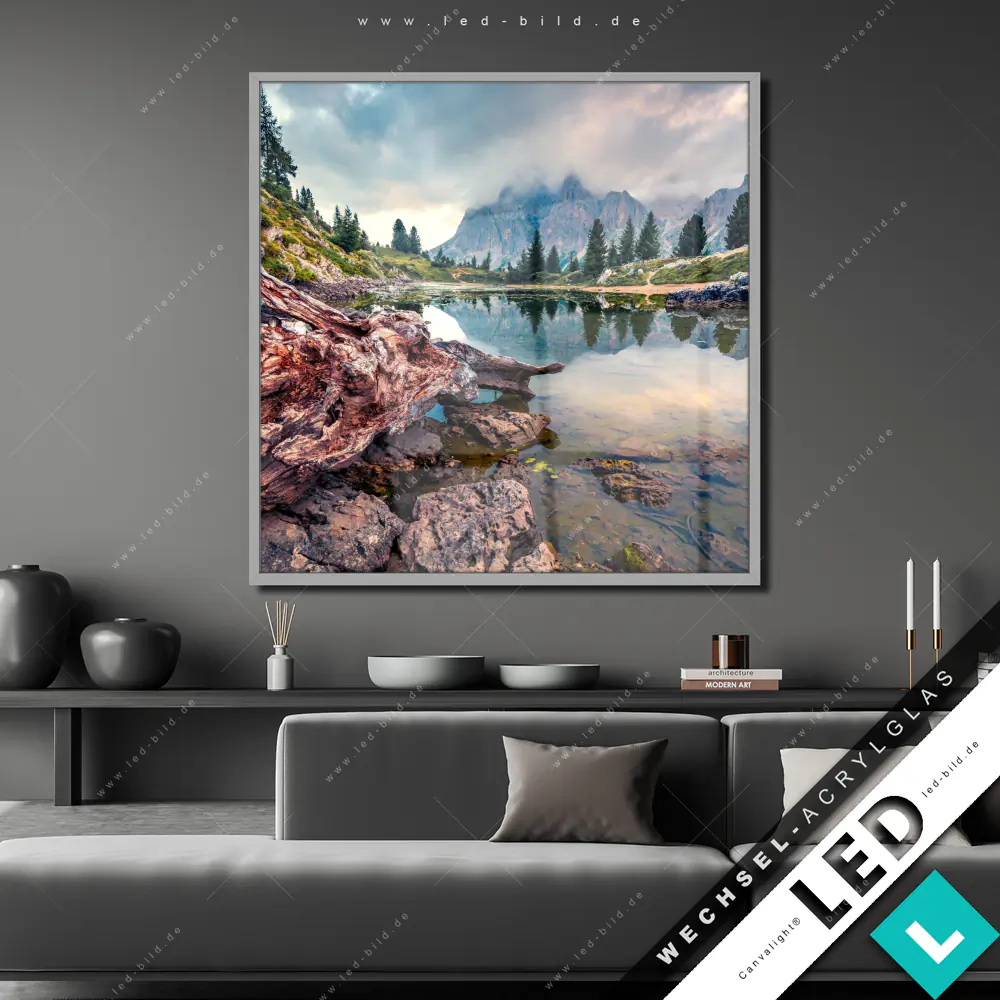 Canvalight® Wechsel-Acrylglas | Dramatischer Morgenblick am See | Quadrat