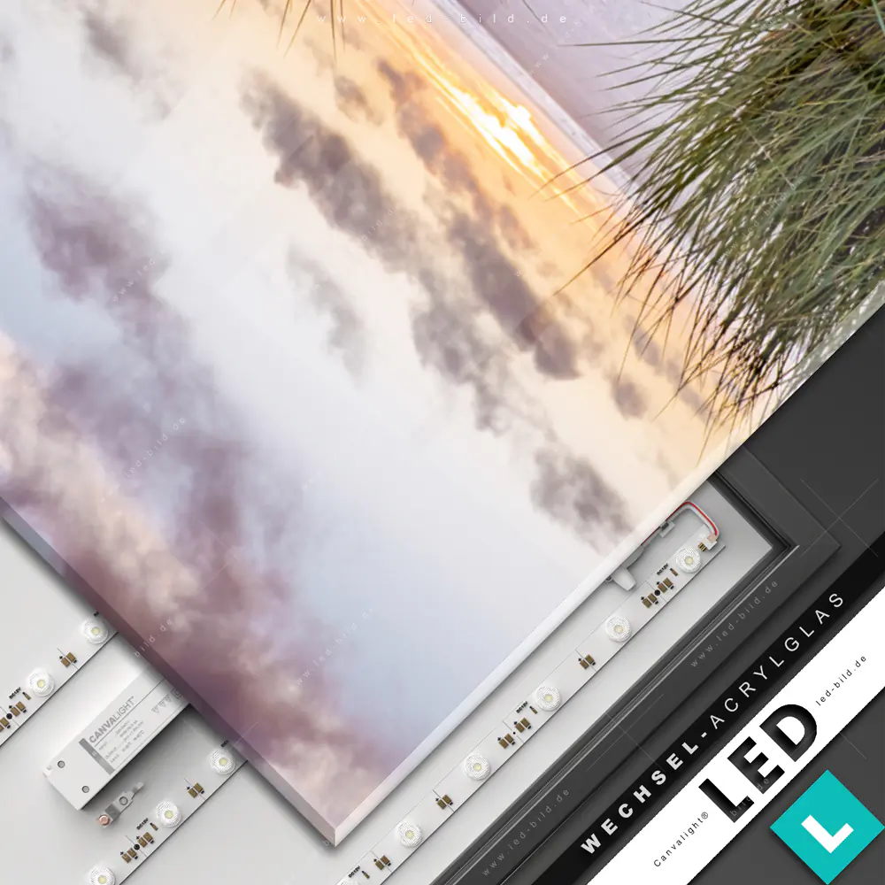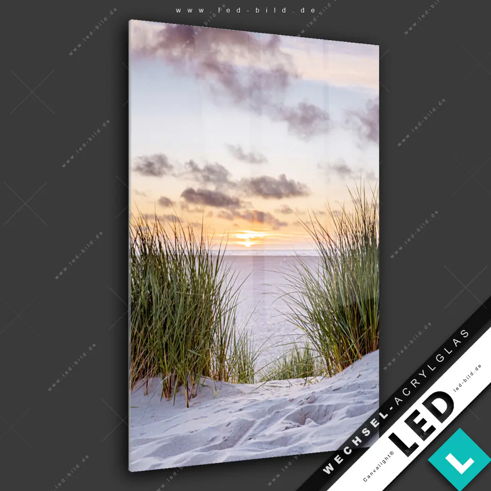 Canvalight® Wechsel-Acrylglas | Dünen und Abendsonne | Hochformat