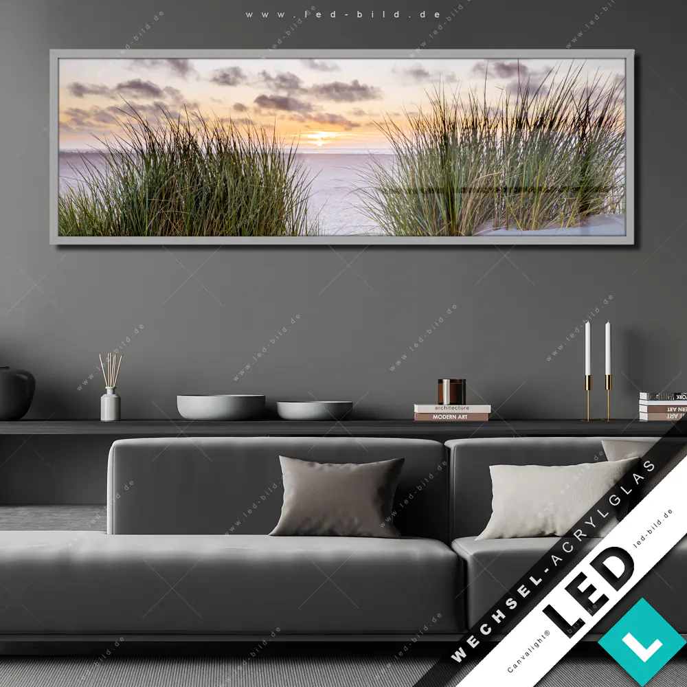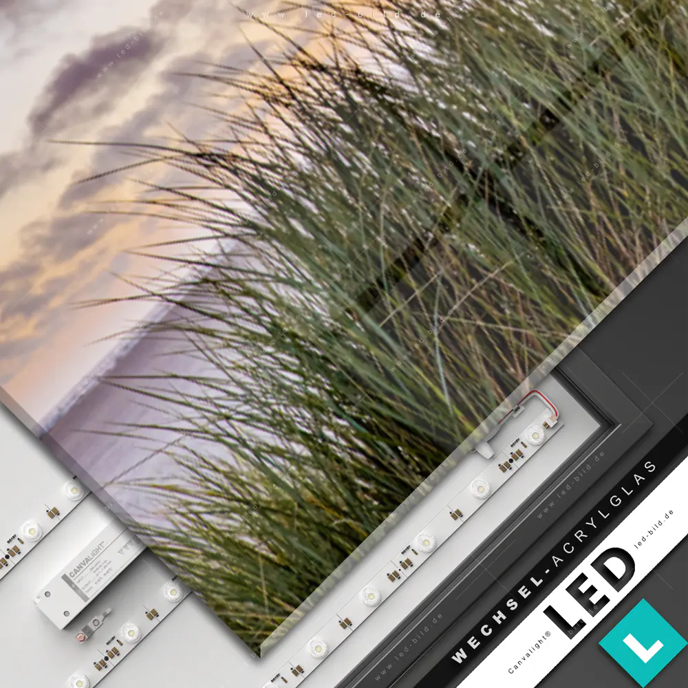 Canvalight® Wechsel-Acrylglas | Dünen und Abendsonne | Panorama