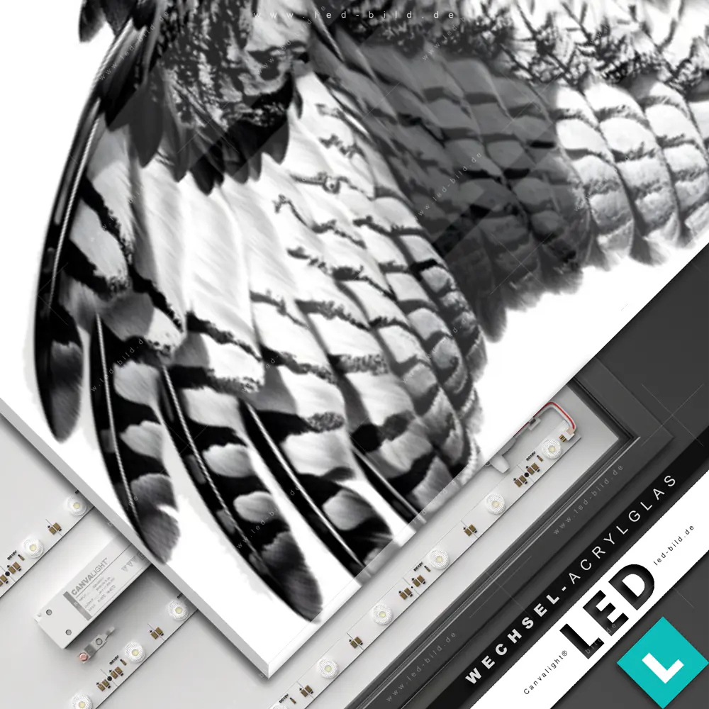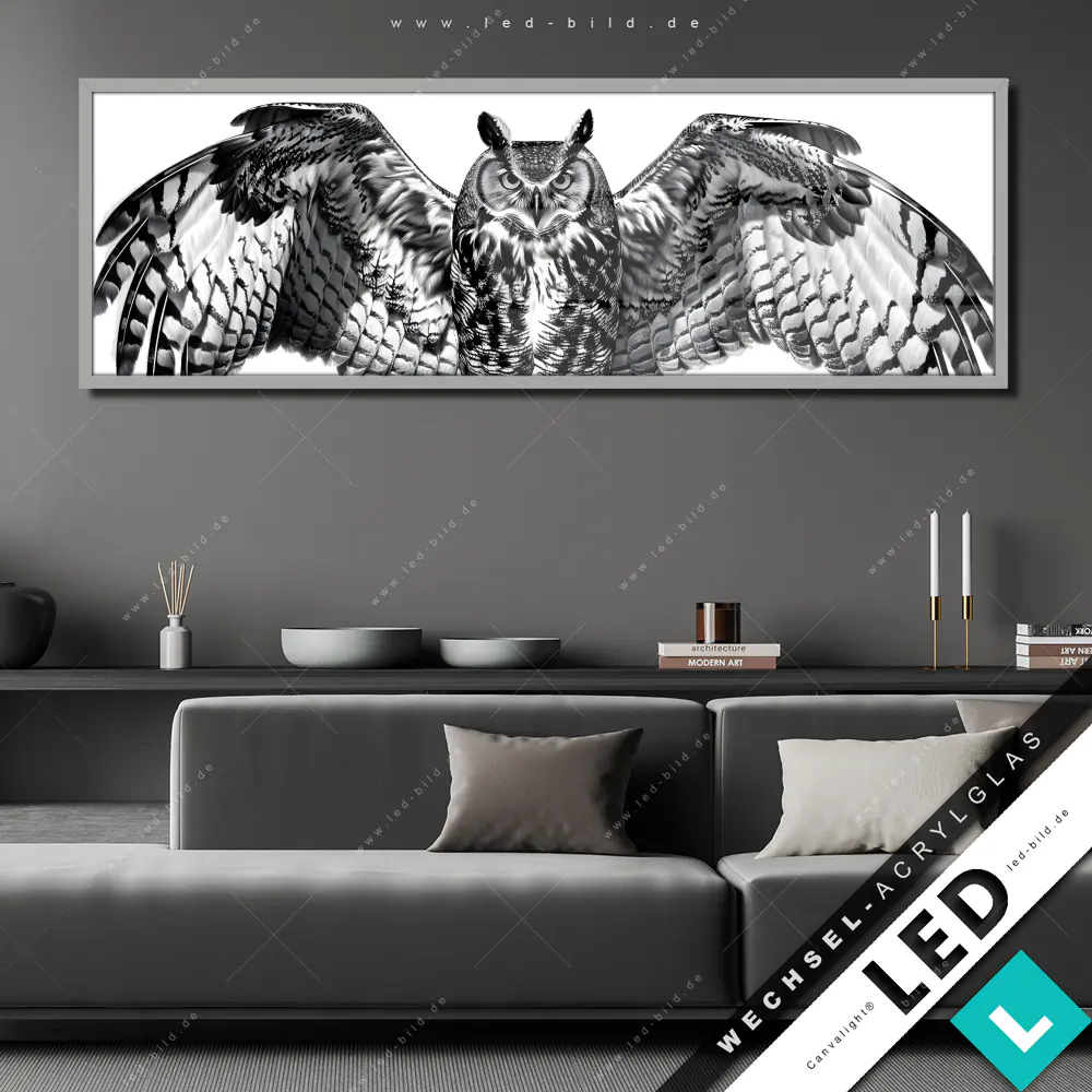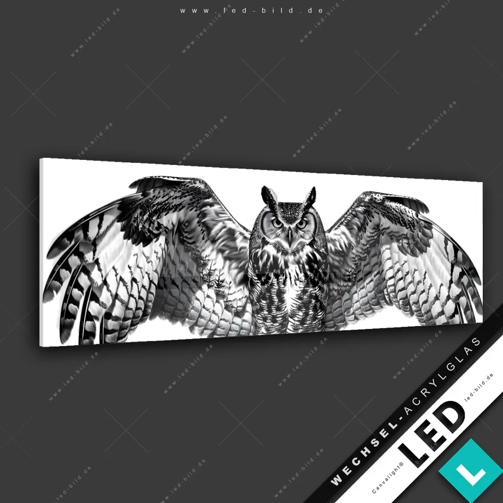 Canvalight® Wechsel-Acrylglas | Eule auf Ast | Panorama