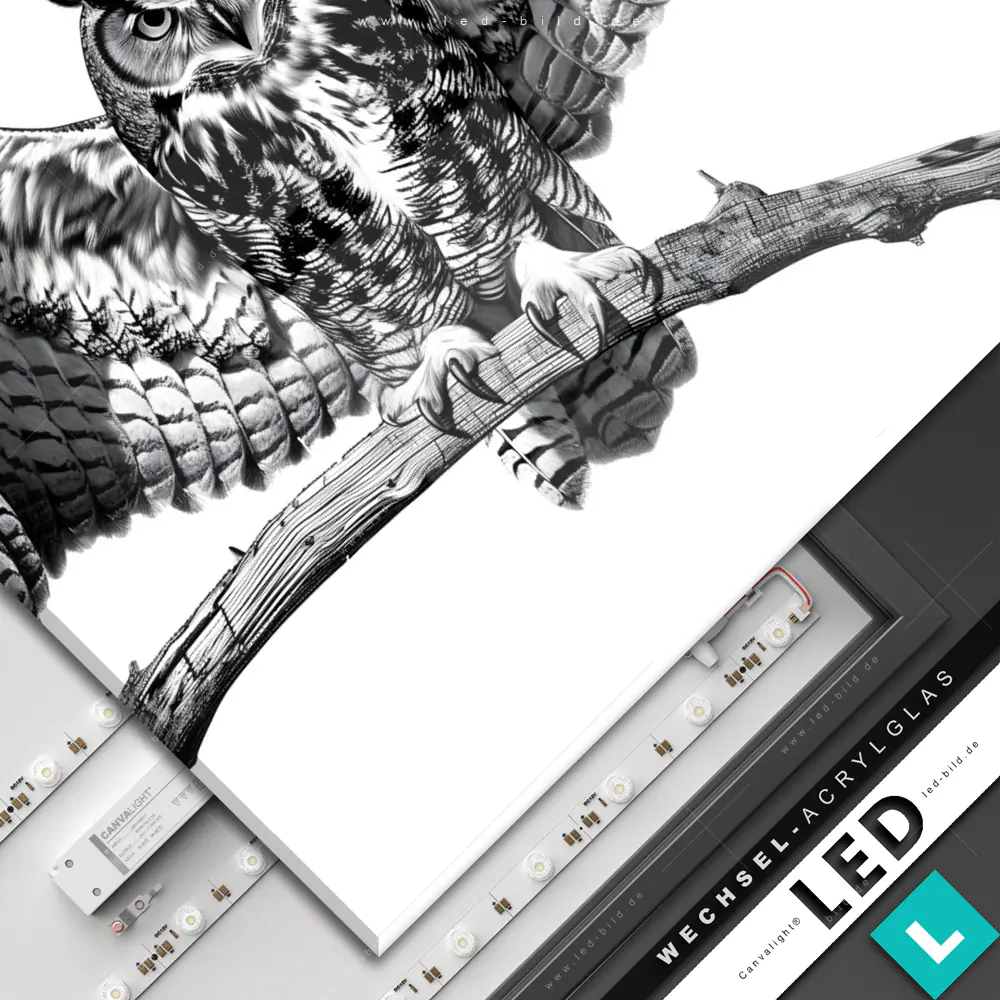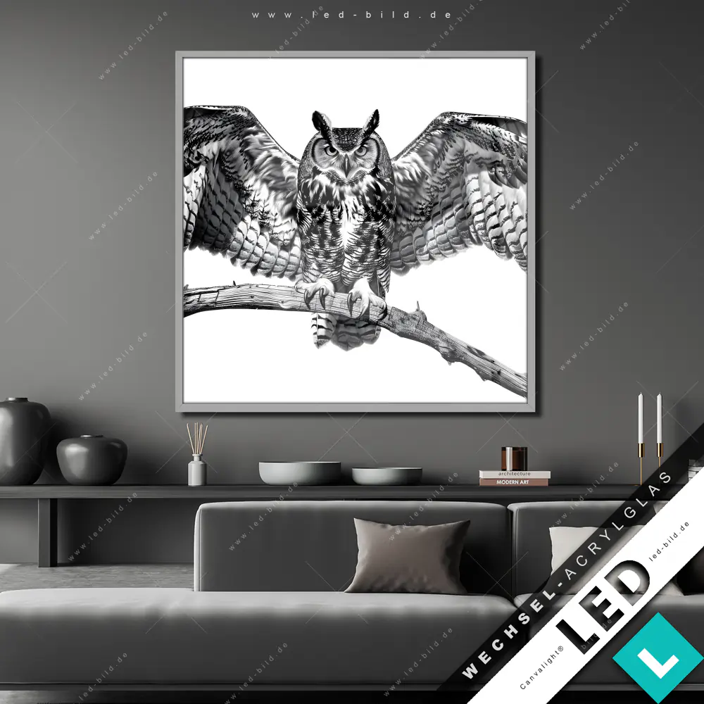 Canvalight® Wechsel-Acrylglas | Eule auf Ast | Quadrat