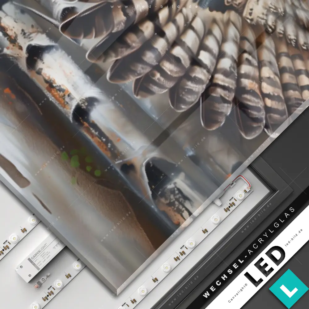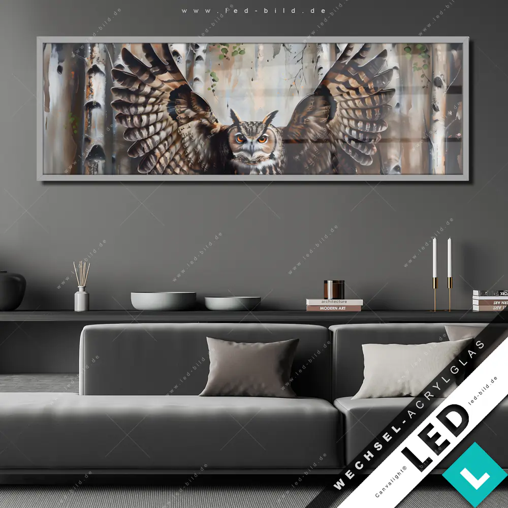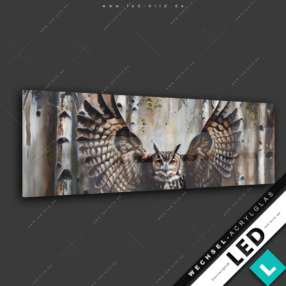 Canvalight® Wechsel-Acrylglas | Eule im Birkenwald | Panorama