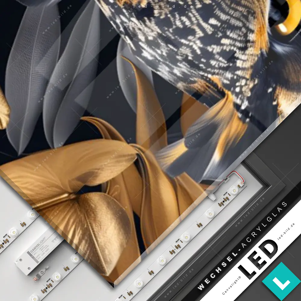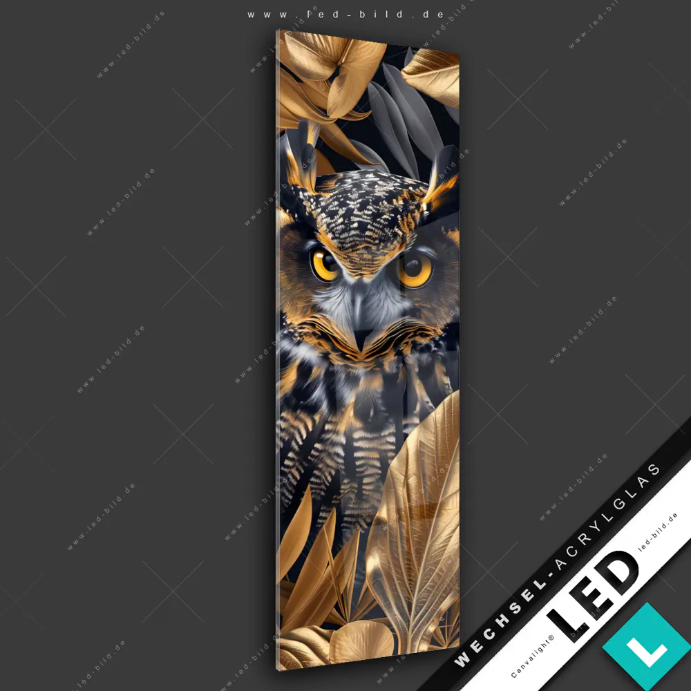 Canvalight® Wechsel-Acrylglas | Eule und goldene Blätter | Schmal