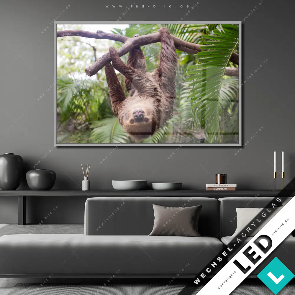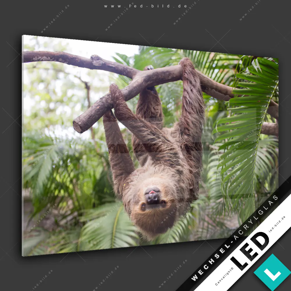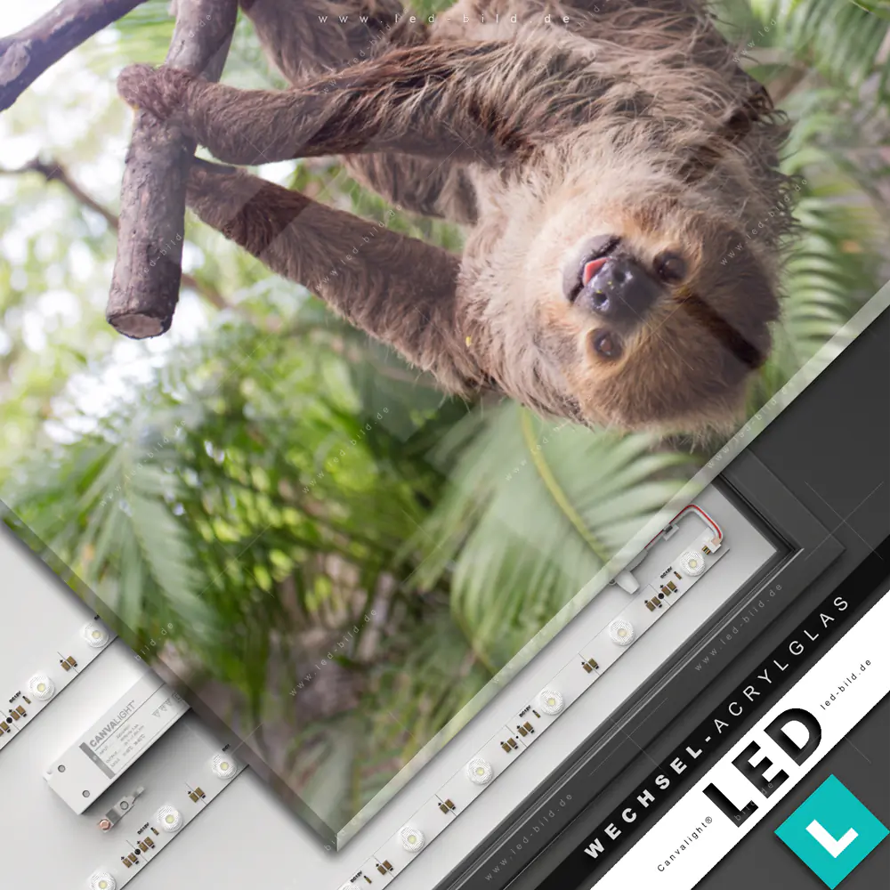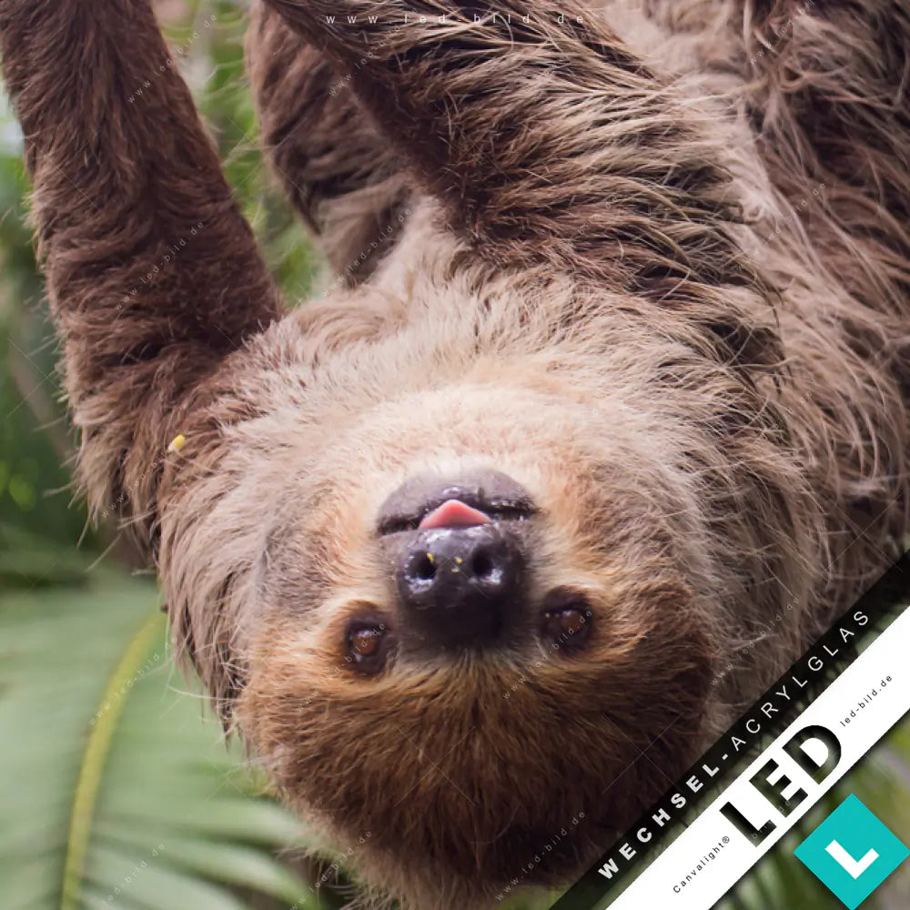 Canvalight® Wechsel-Acrylglas | Faultier streckt Zunge raus | Querformat