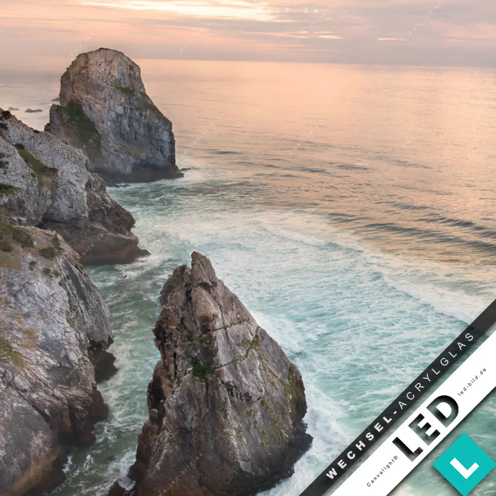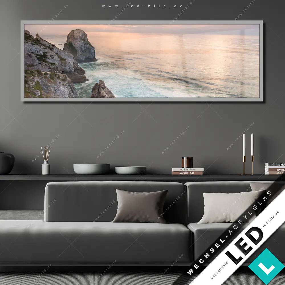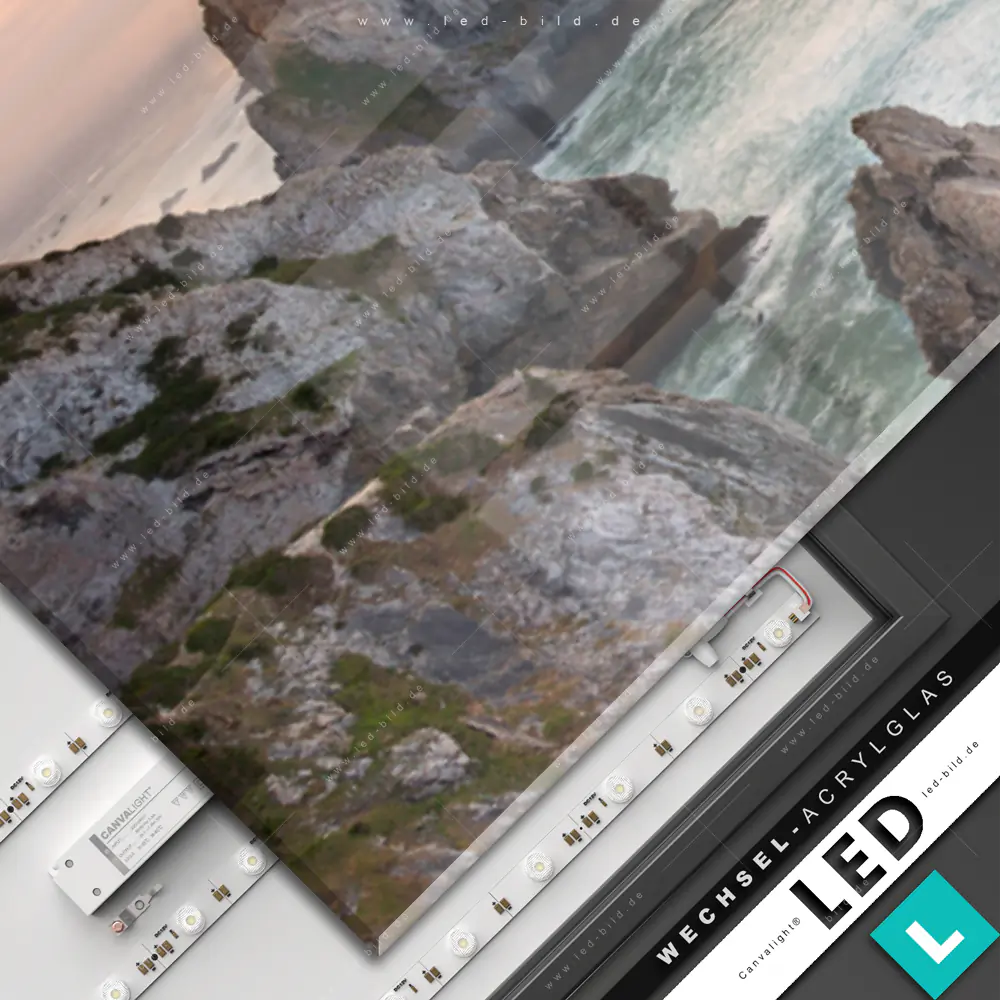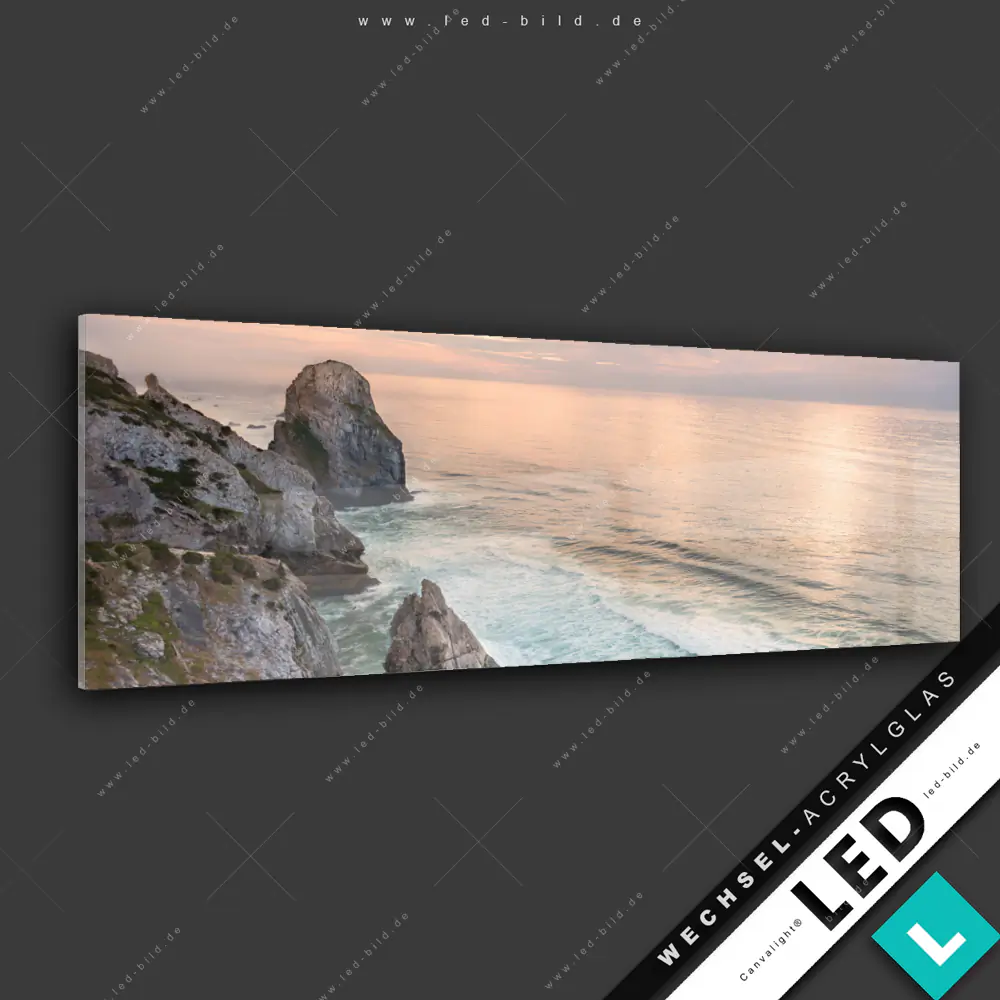 Canvalight® Wechsel-Acrylglas | Felsen am Meer | Panorama