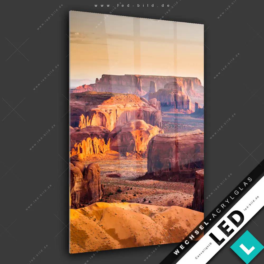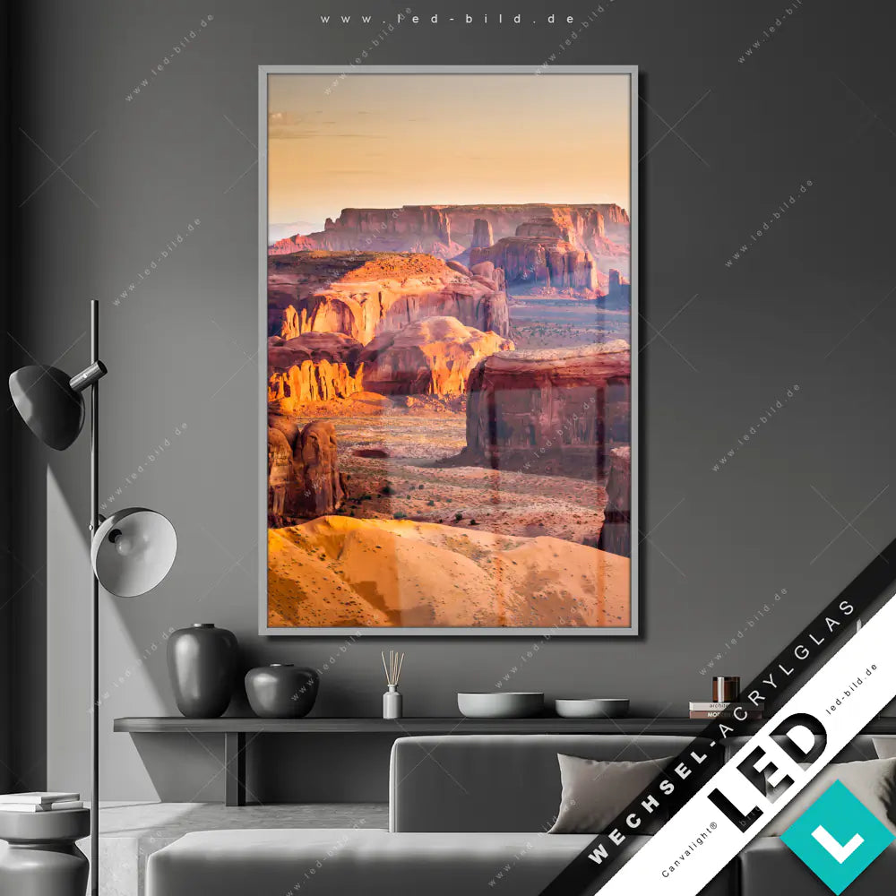 Canvalight® Wechsel-Acrylglas | Felsen bei Sonnenuntergang | Hochformat
