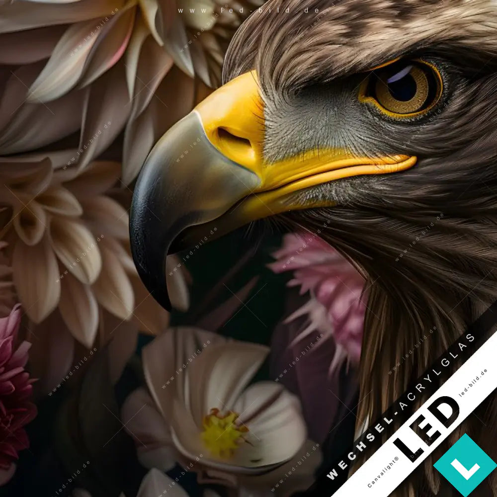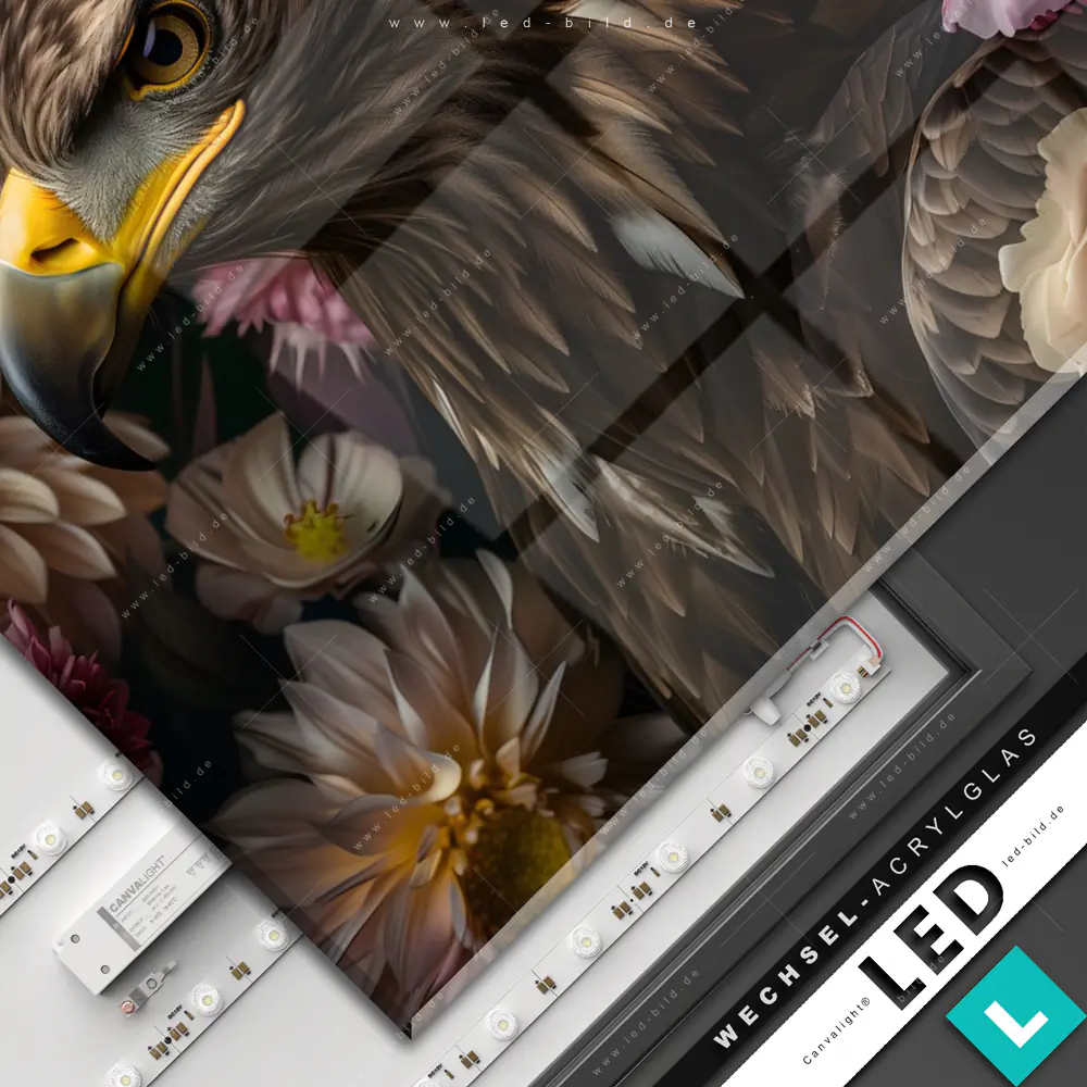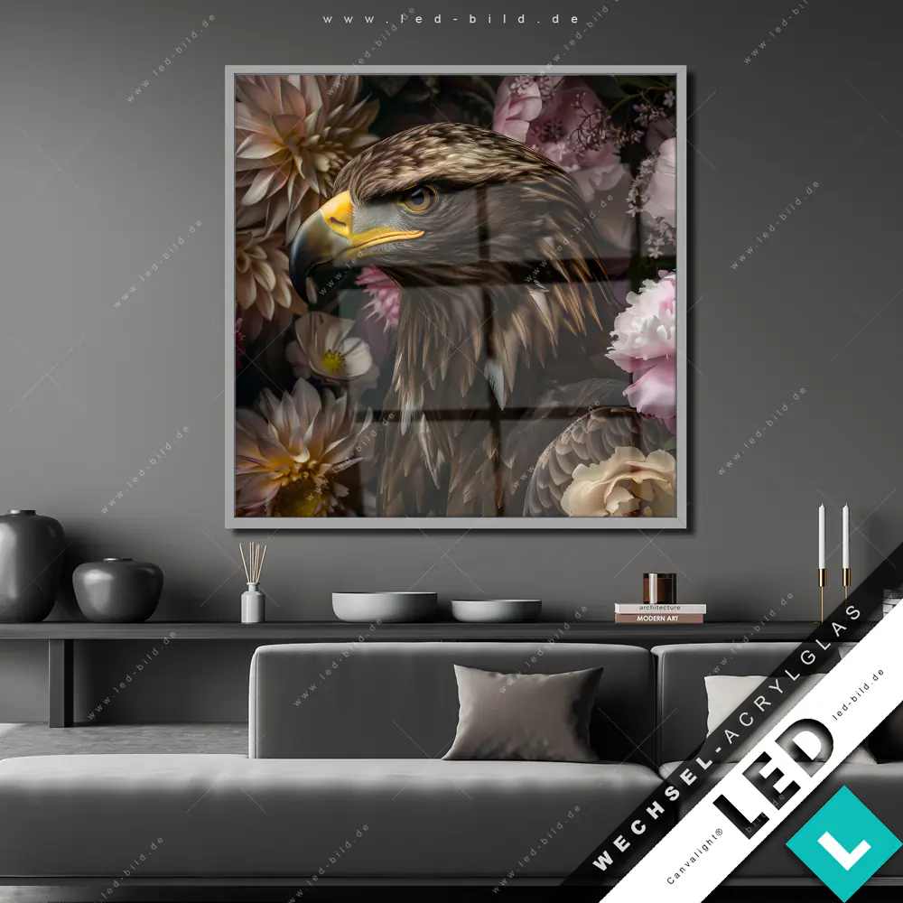 Canvalight® Wechsel-Acrylglas | Florale Eleganz und Adlerblick | Quadrat