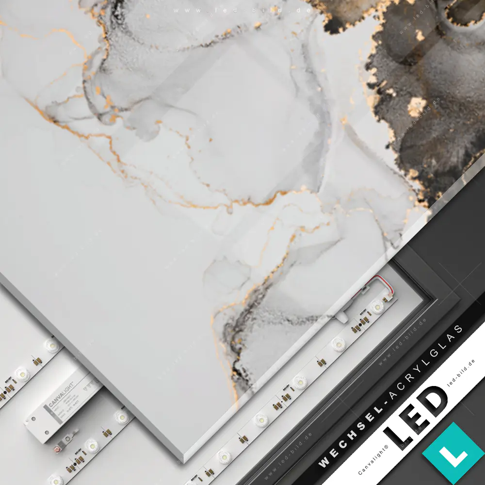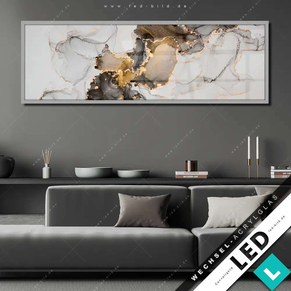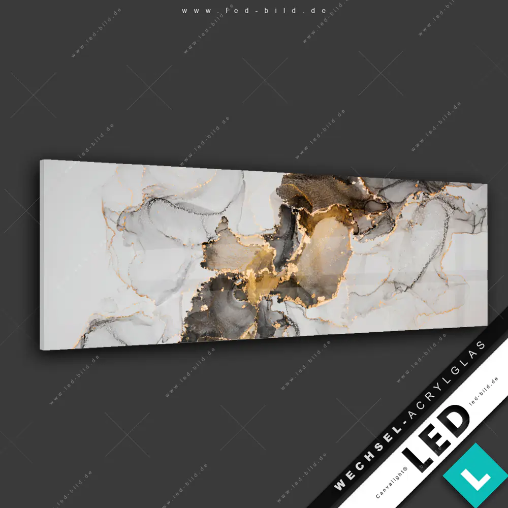 Canvalight® Wechsel-Acrylglas | Fluid Art Gold | Panorama