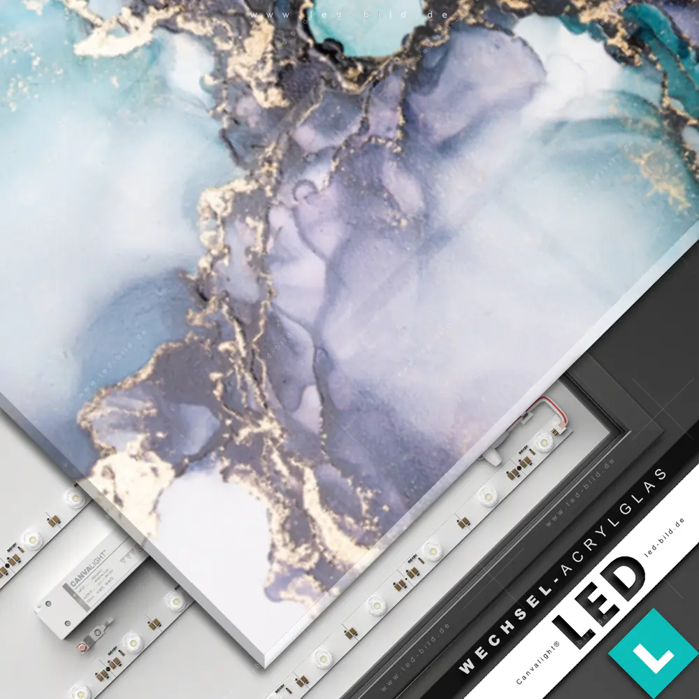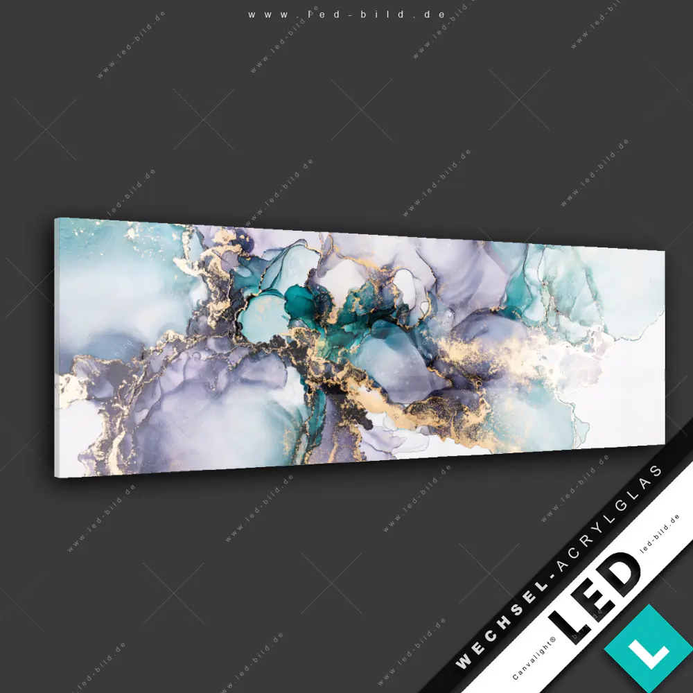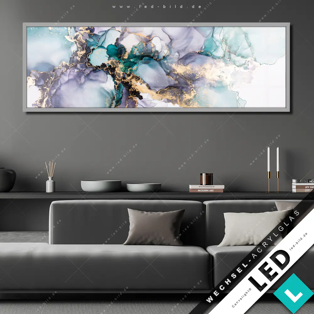 Canvalight® Wechsel-Acrylglas | Fluid Art Lila & Türkis | Panorama
