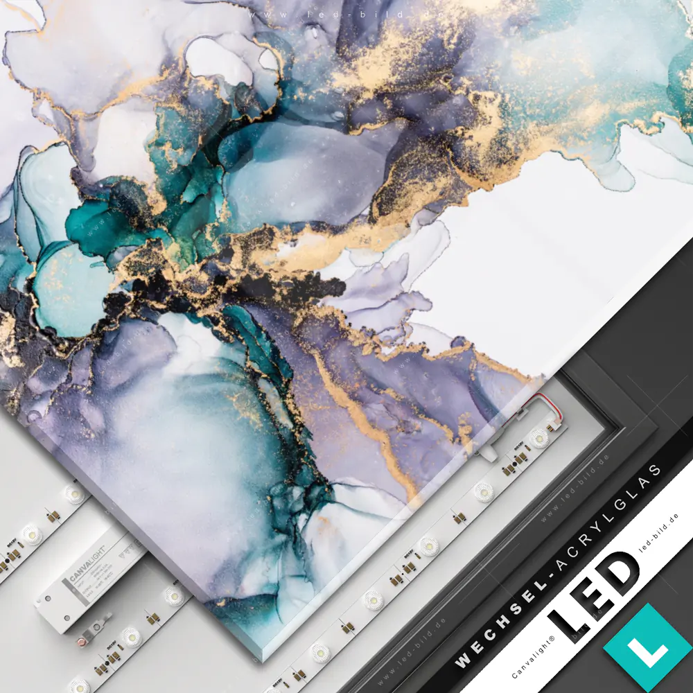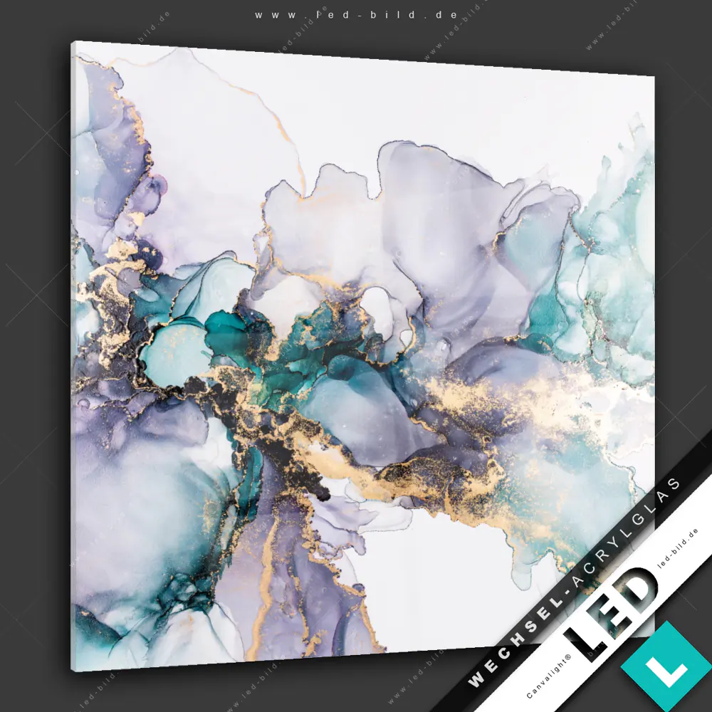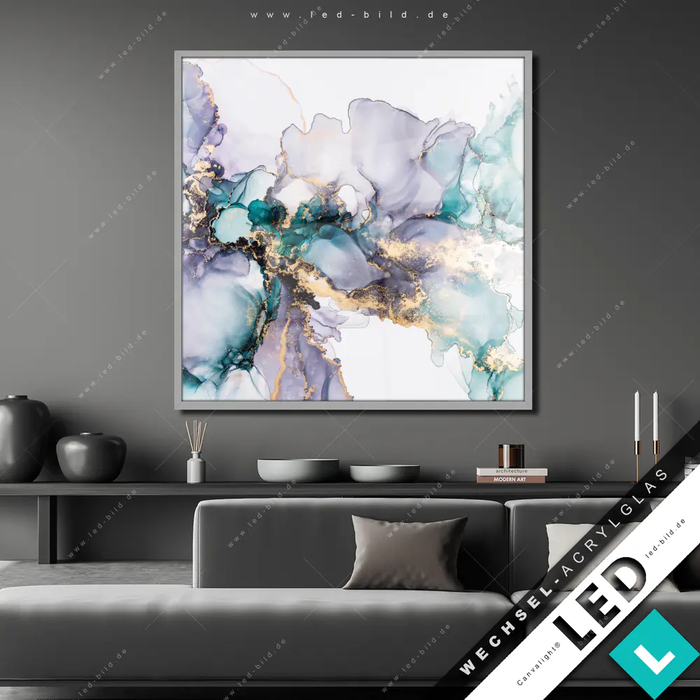 Canvalight® Wechsel-Acrylglas | Fluid Art Lila & Türkis | Quadrat