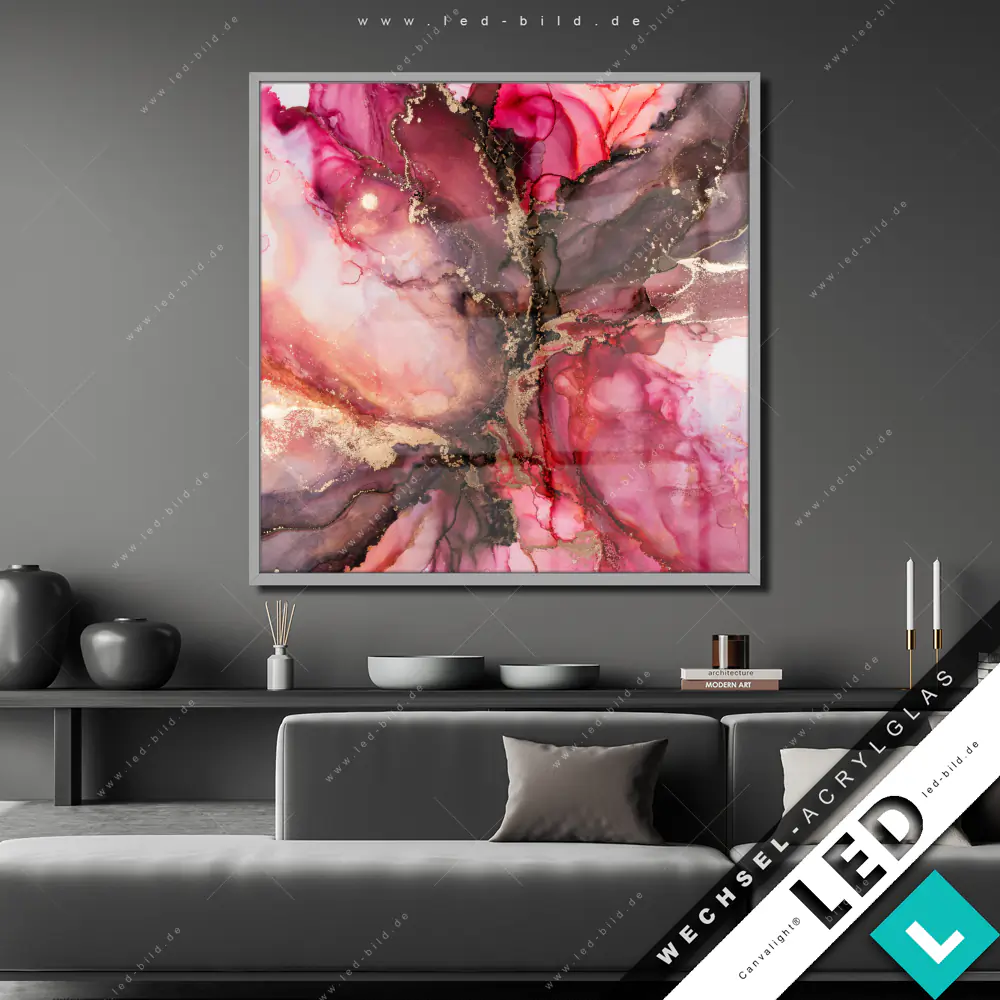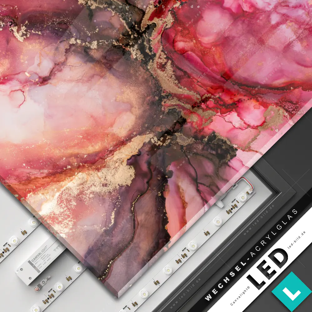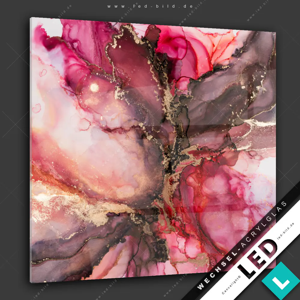 Canvalight® Wechsel-Acrylglas | Fluid Art Rot & Braun | Quadrat