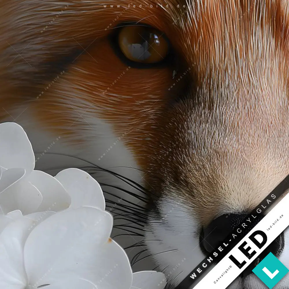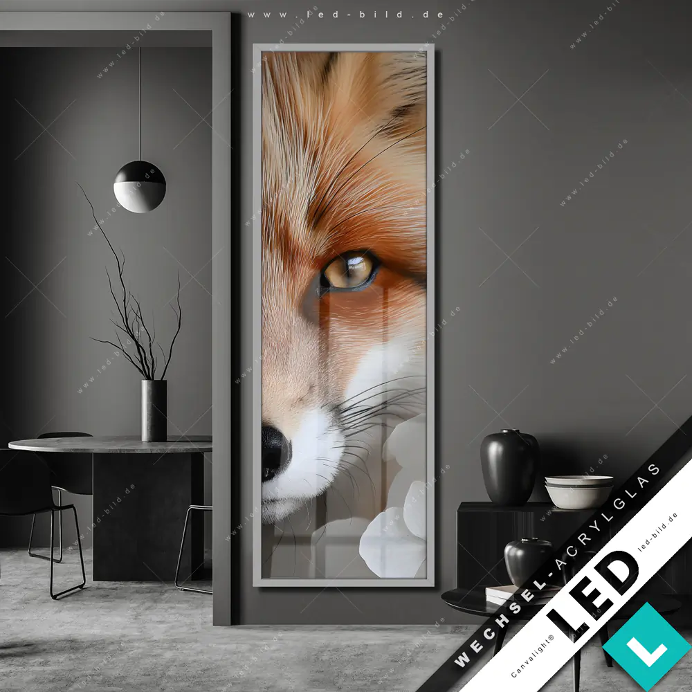 Canvalight® Wechsel-Acrylglas | Friedlicher Fuchs und Blumen | Schmal
