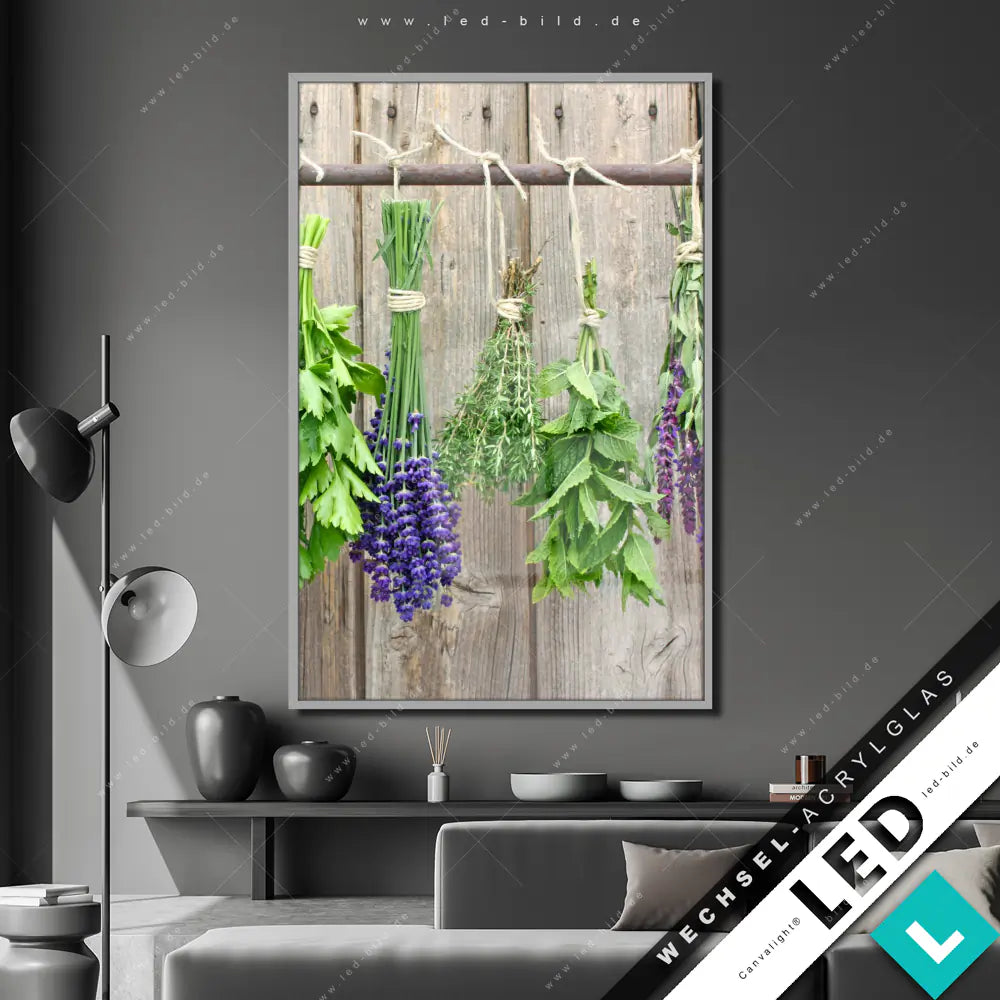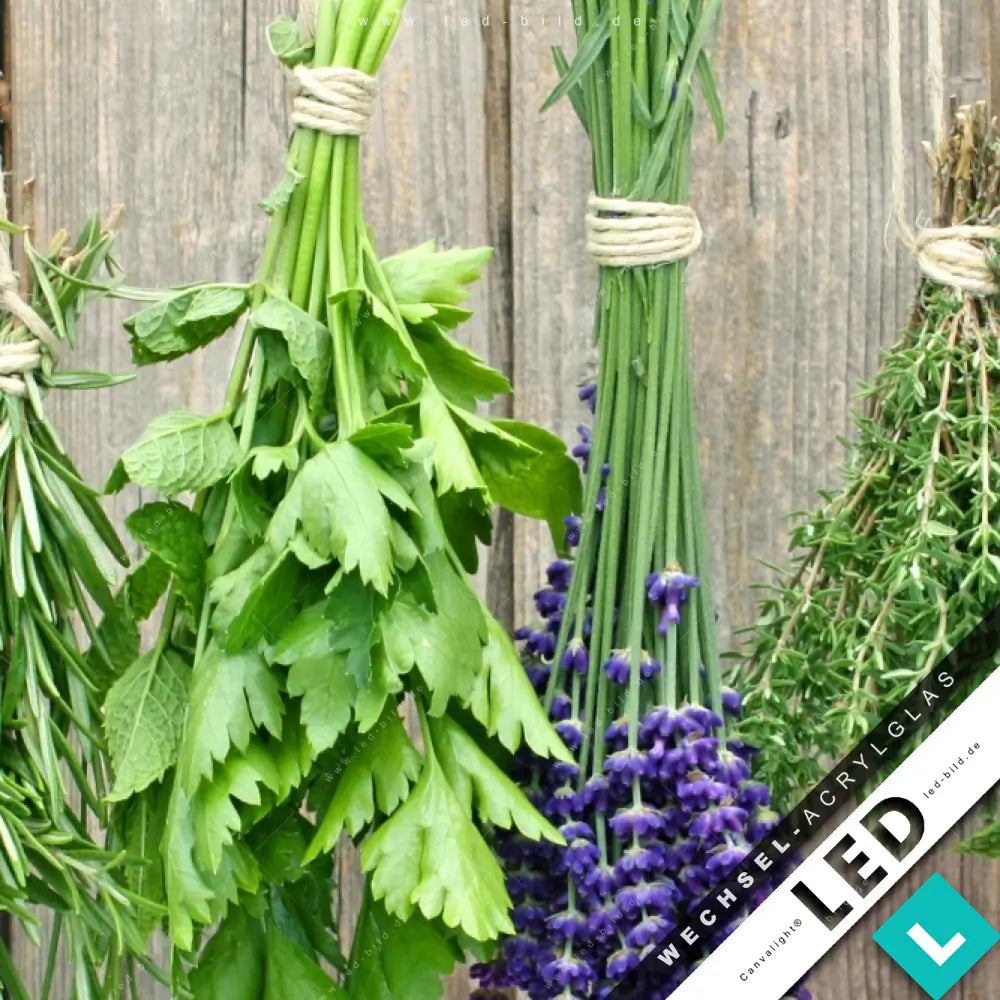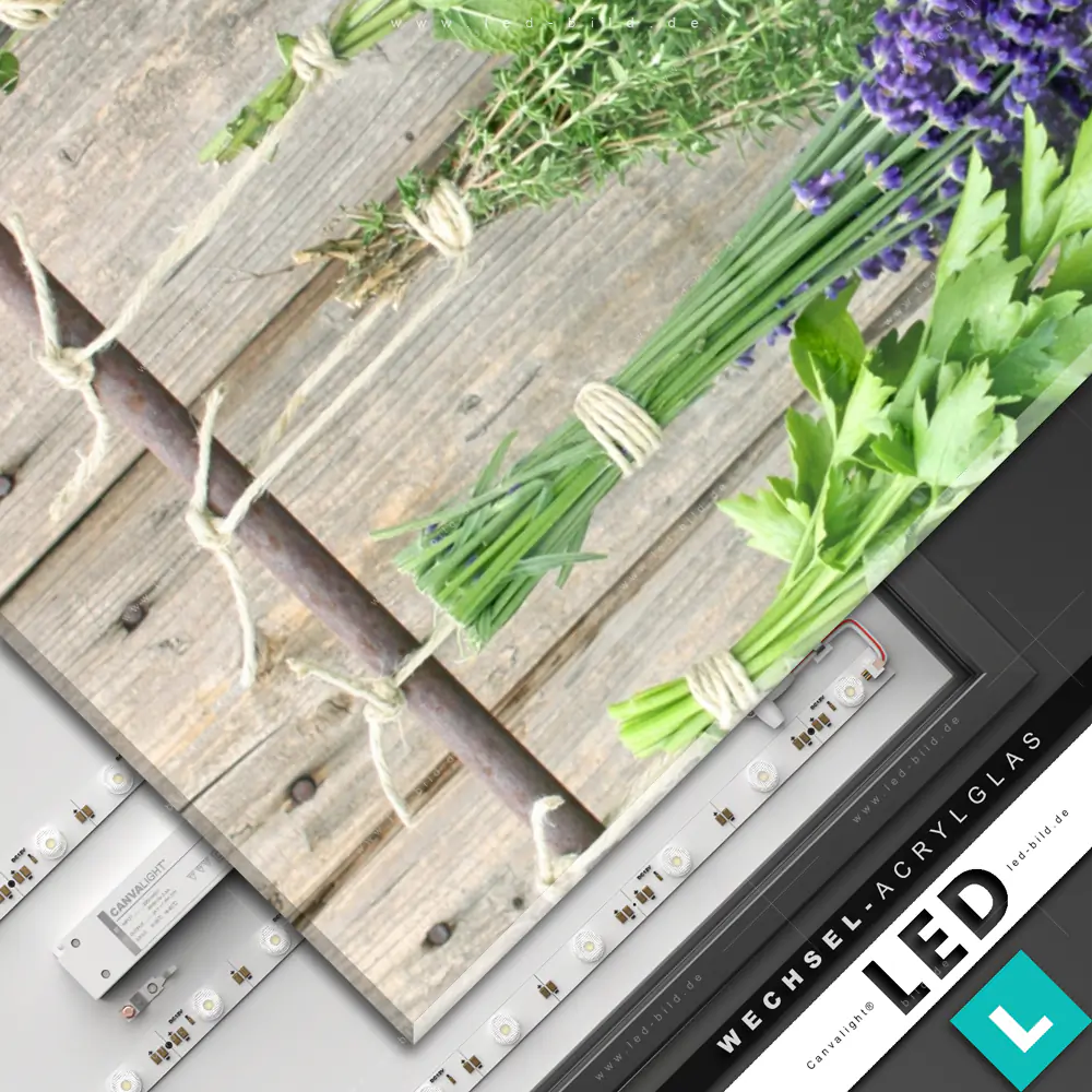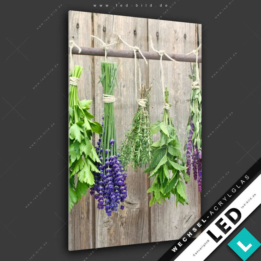 Canvalight® Wechsel-Acrylglas | Frische Kräuter an Holzstange | Hochformat