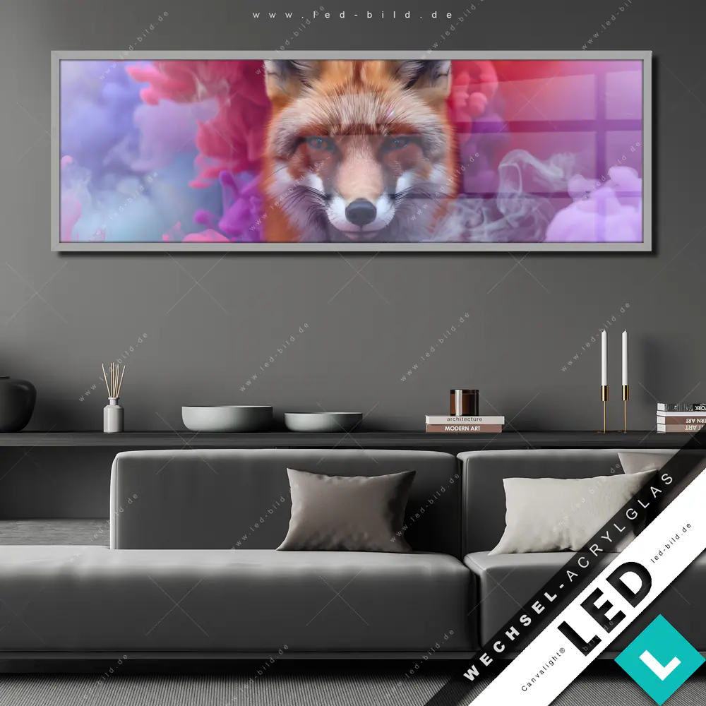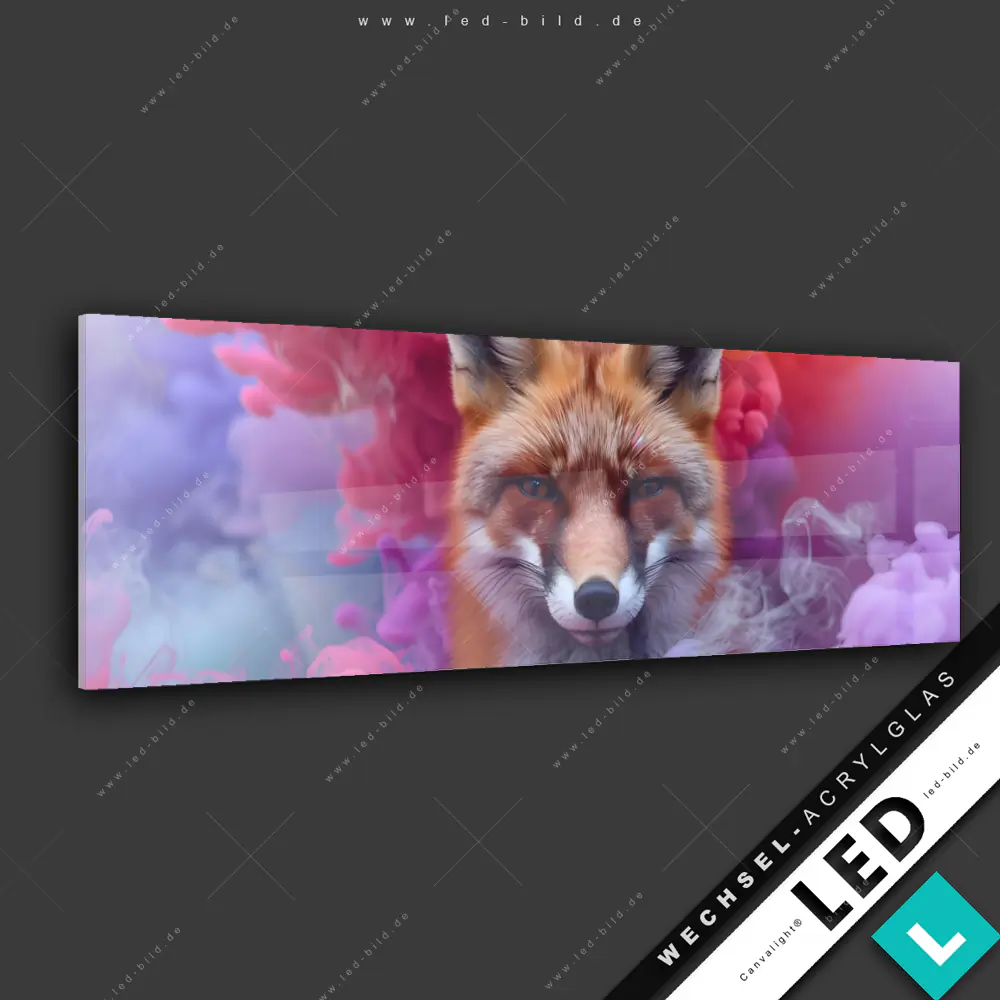 Canvalight® Wechsel-Acrylglas | Fuchs in Farbnebel | Panorama