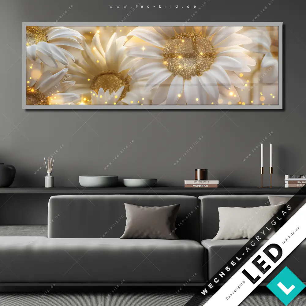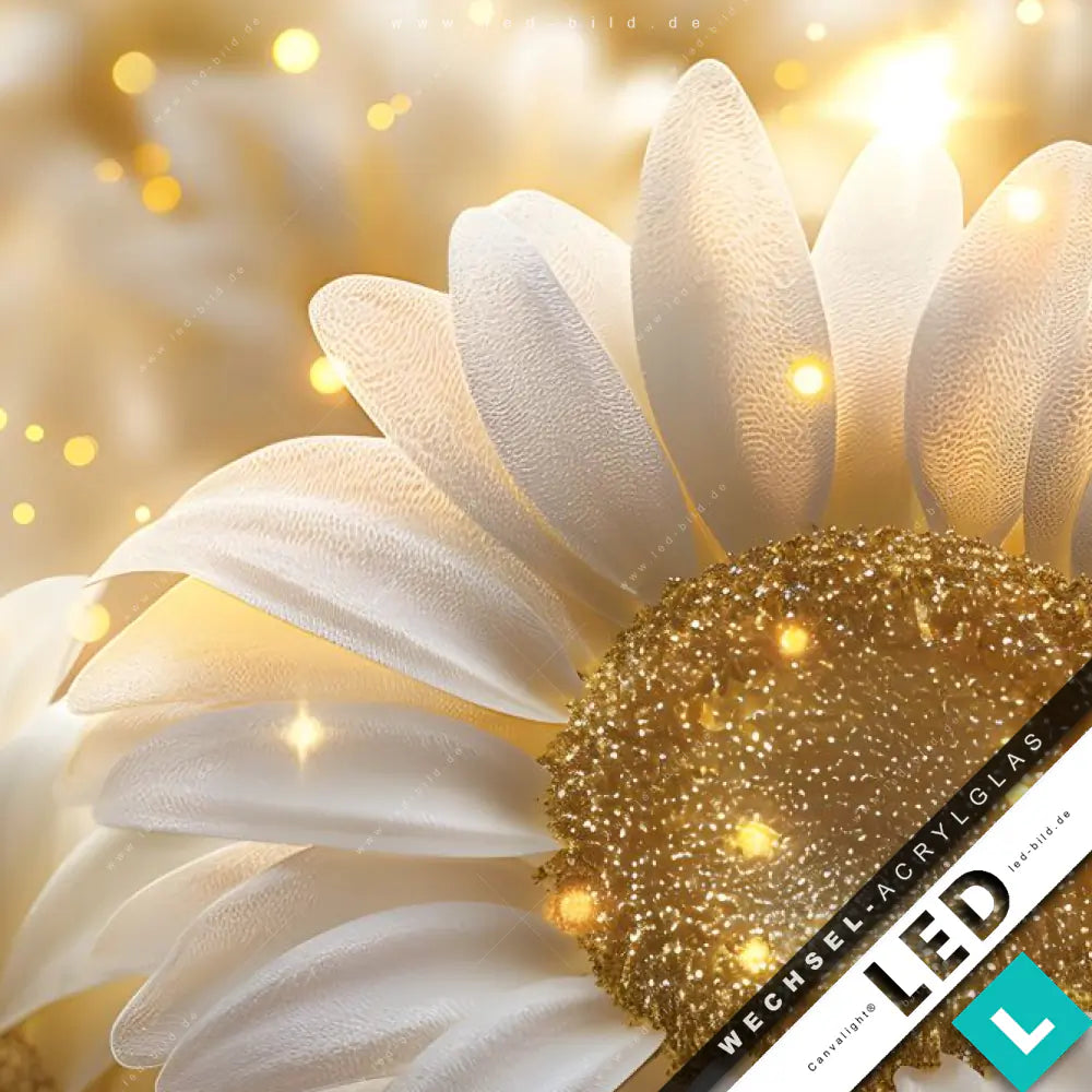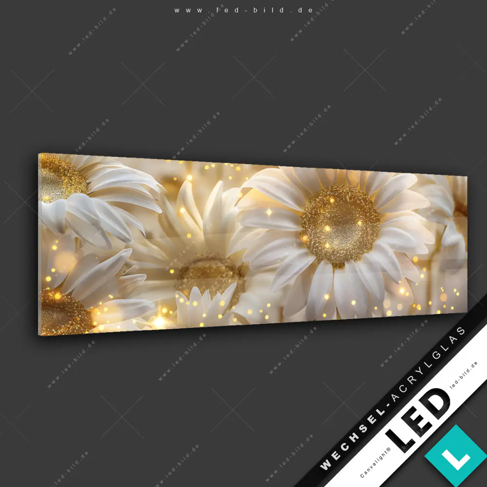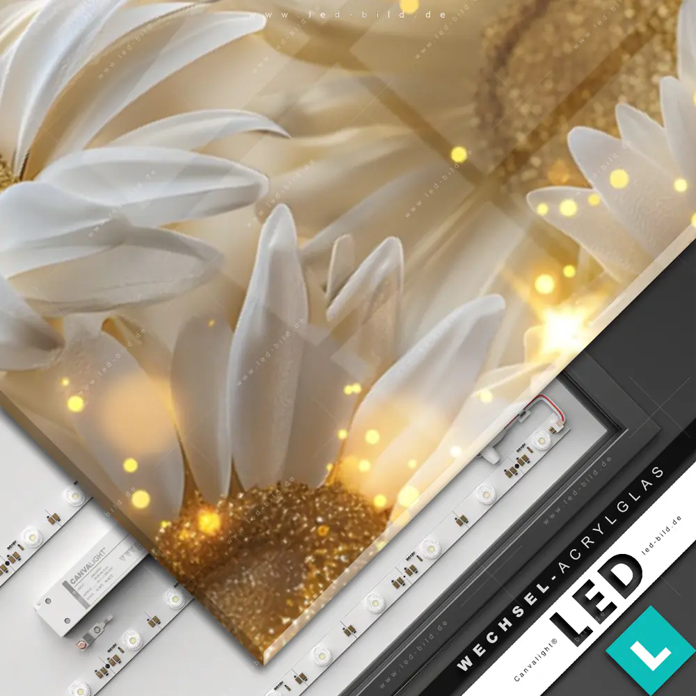 Canvalight® Wechsel-Acrylglas | Funkelnde Blumen in Gold | Panorama