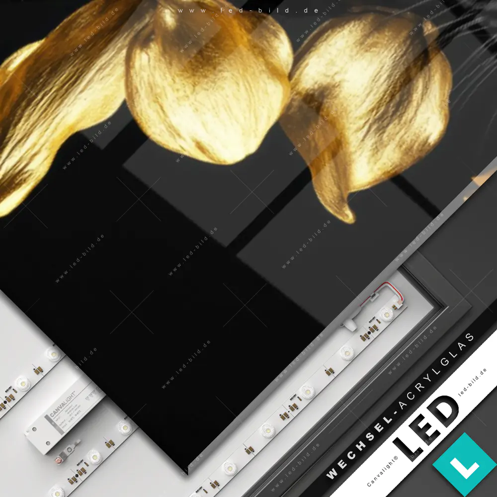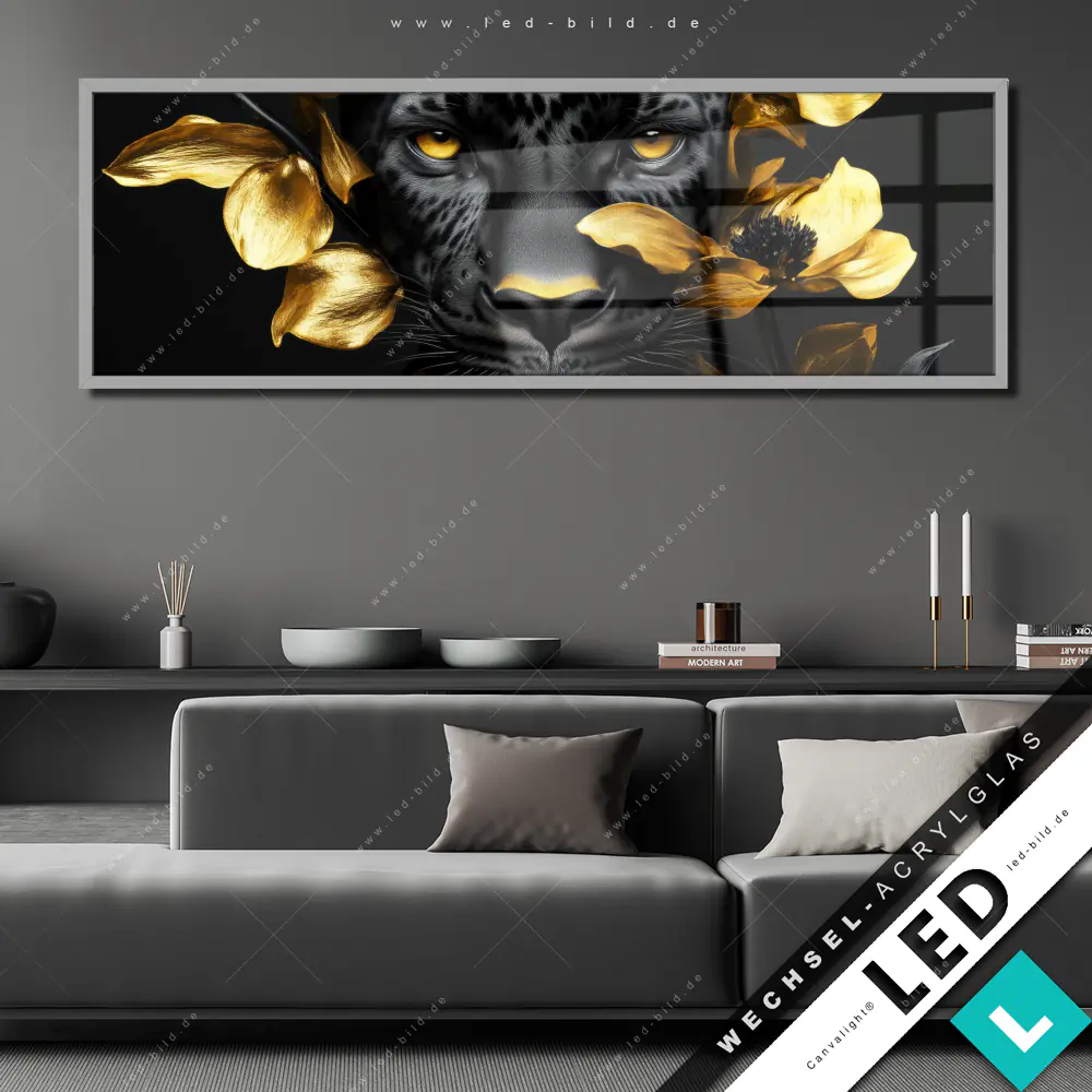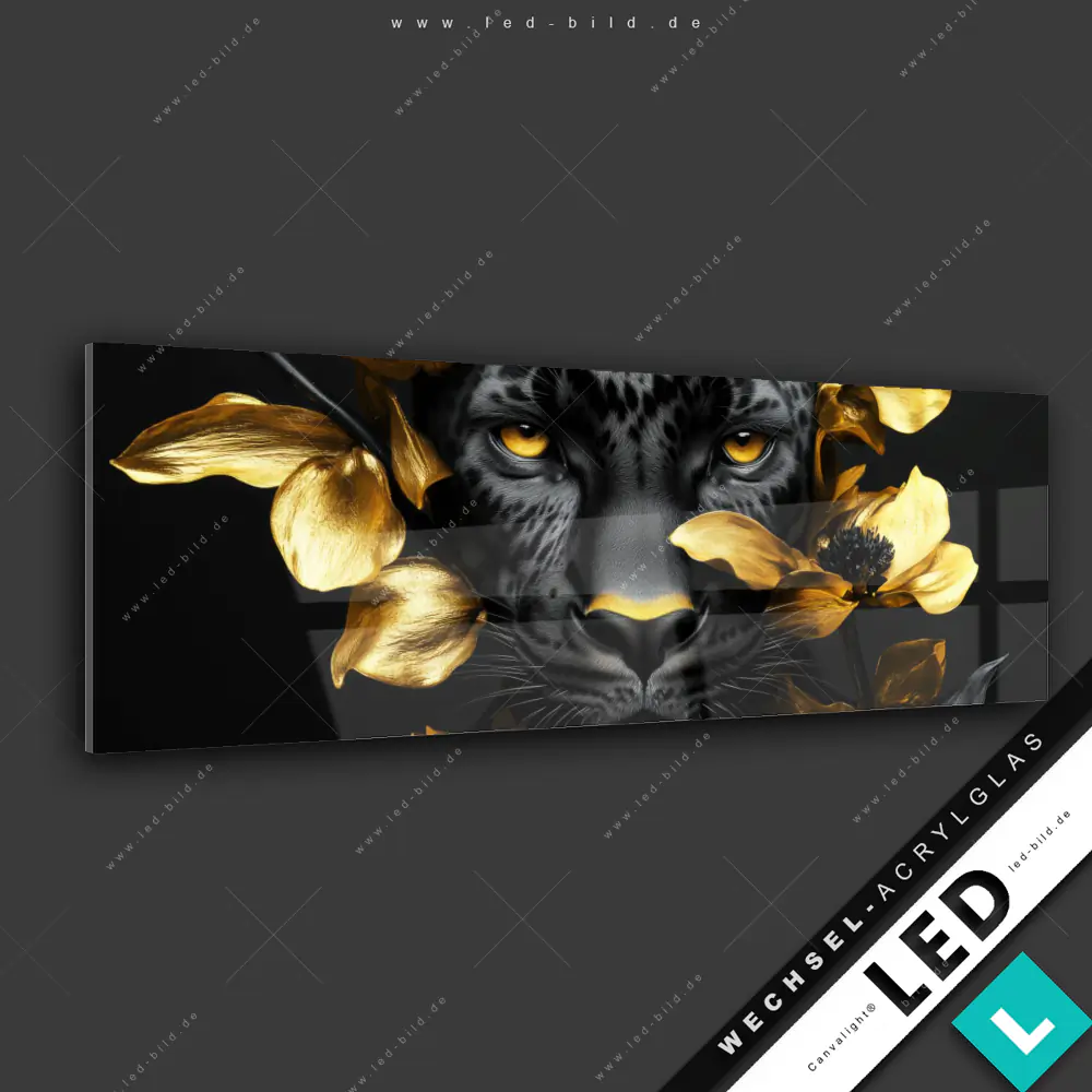 Canvalight® Wechsel-Acrylglas | Goldblumen & Panther | Panorama