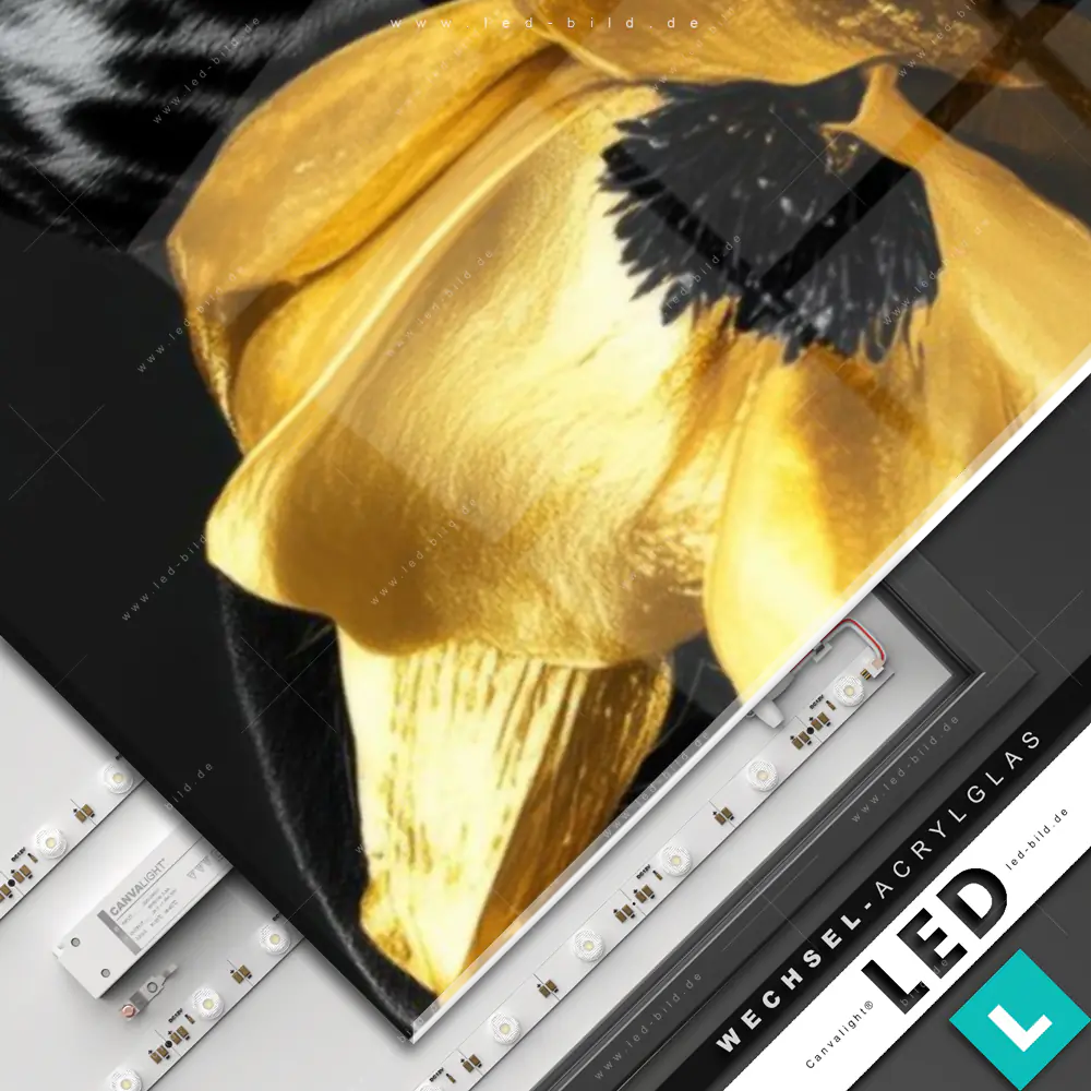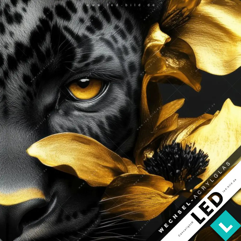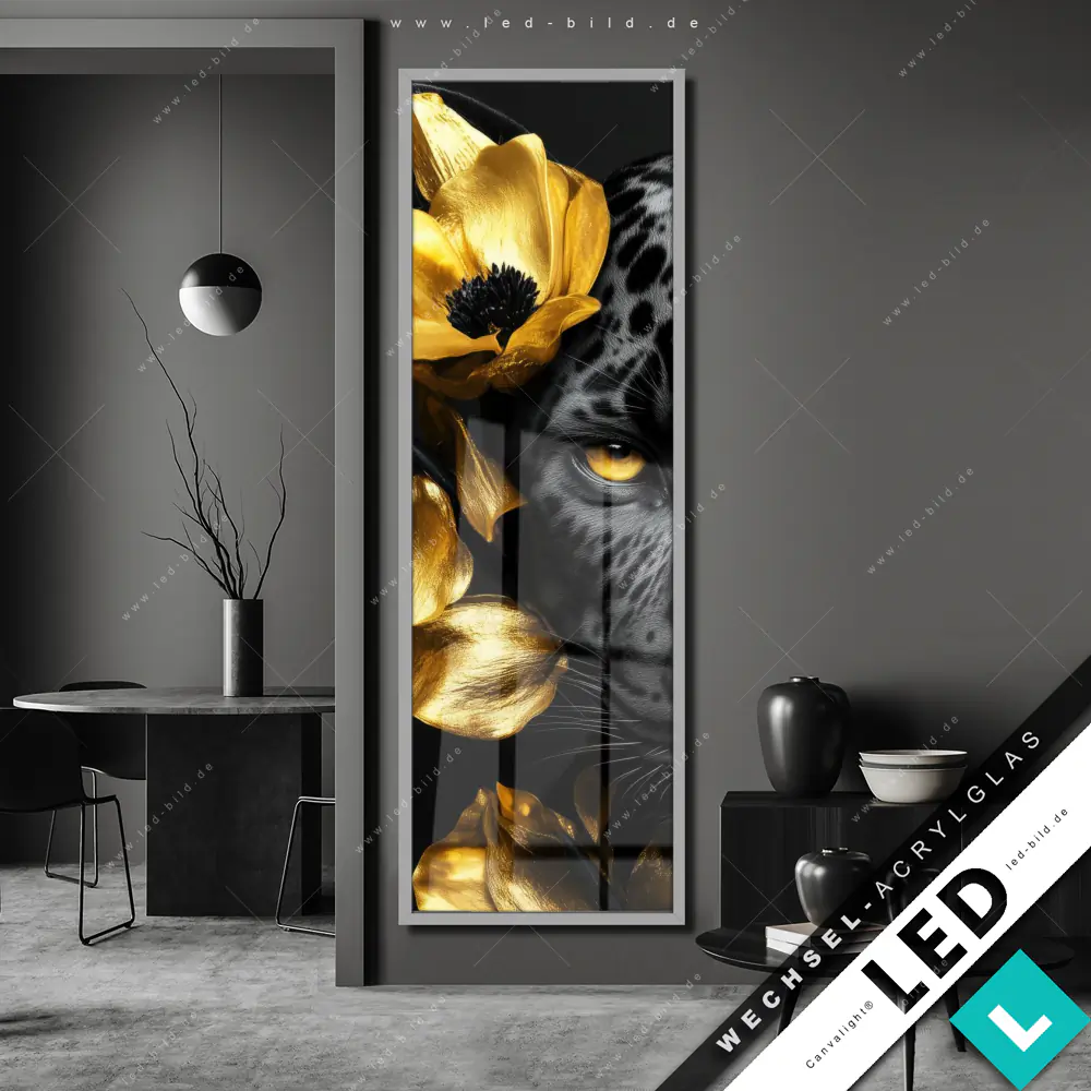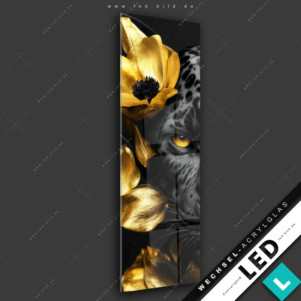 Canvalight® Wechsel-Acrylglas | Goldblumen & Panther | Schmal