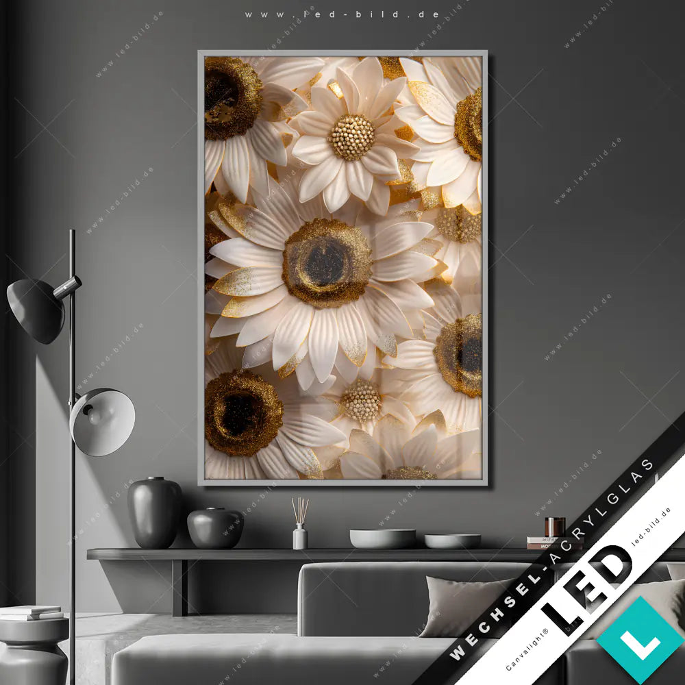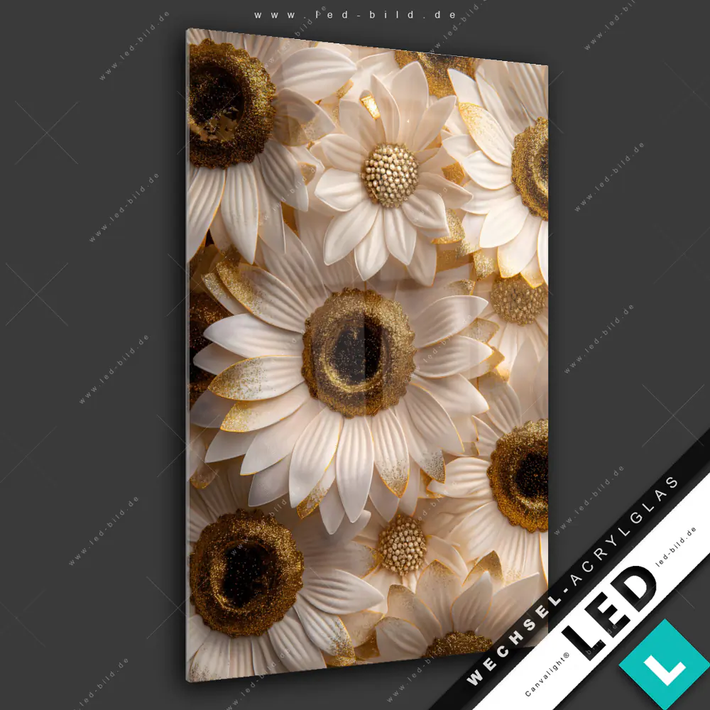 Canvalight® Wechsel-Acrylglas | Goldene Blütenpracht | Hochformat