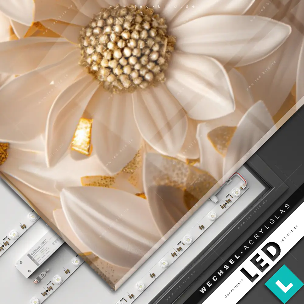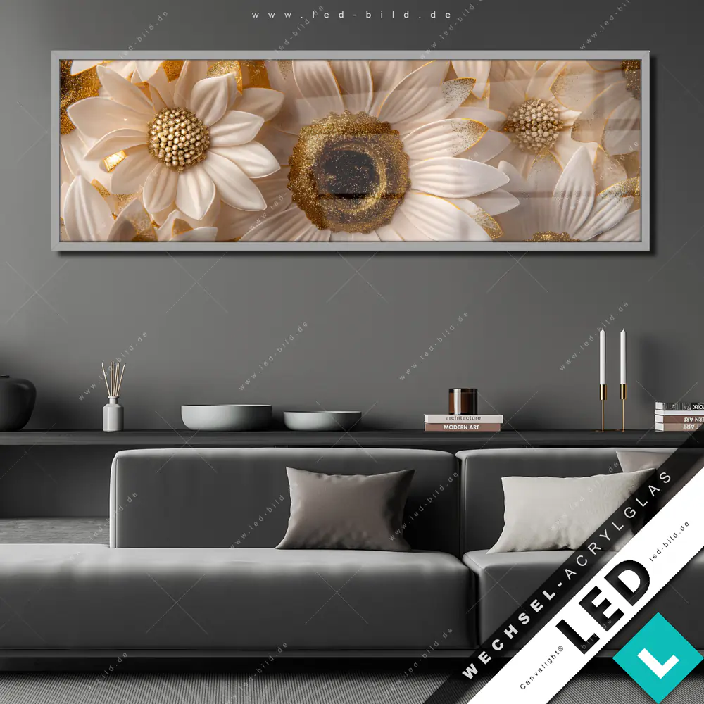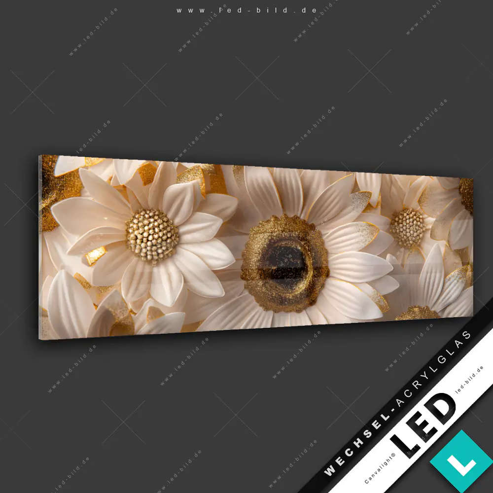 Canvalight® Wechsel-Acrylglas | Goldene Blütenpracht | Panorama