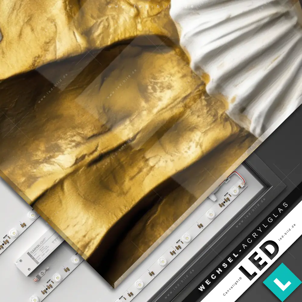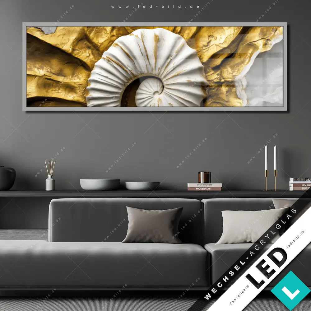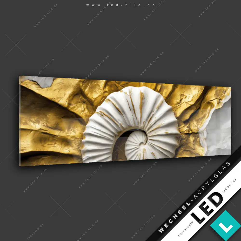 Canvalight® Wechsel-Acrylglas | Goldene Muschel-Kunst | Panorama