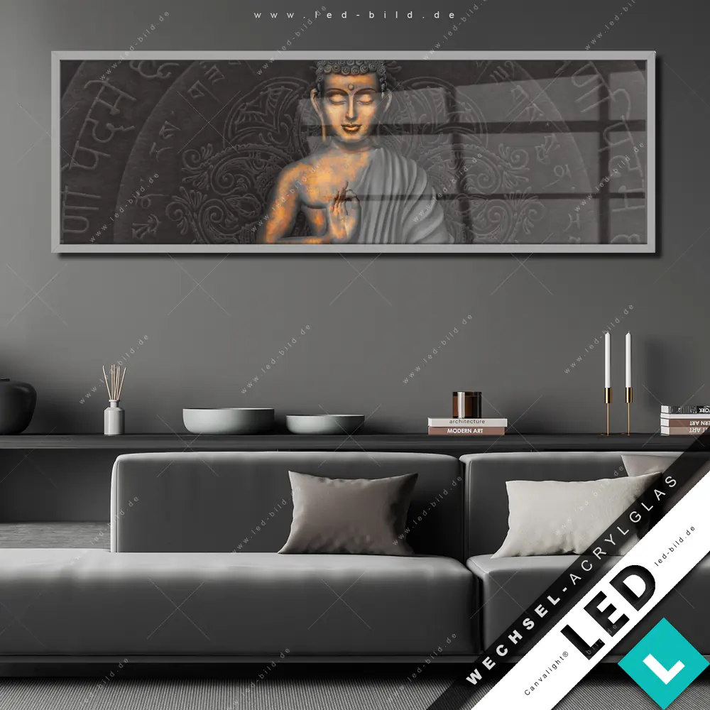 Canvalight® Wechsel-Acrylglas | Goldener Buddha | Panorama