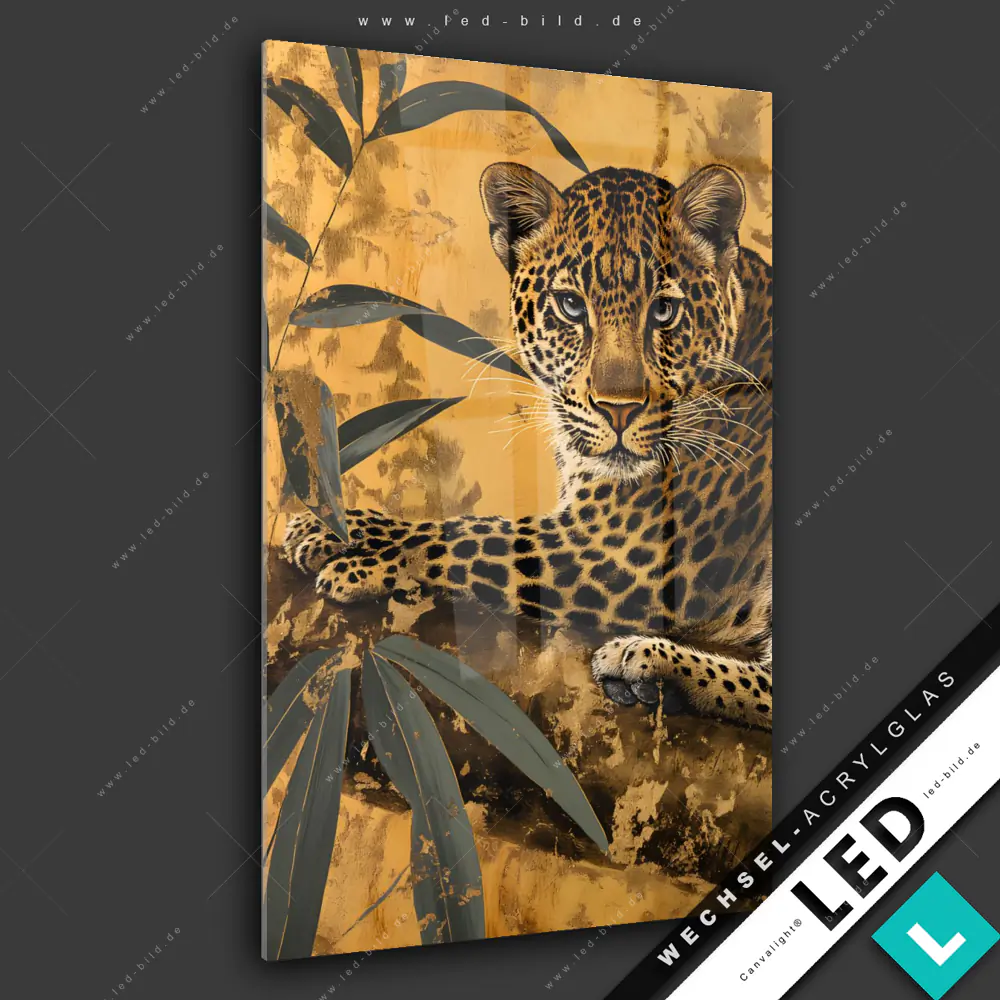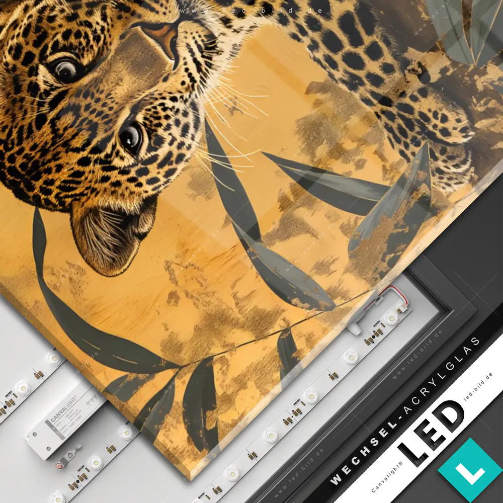 Canvalight® Wechsel-Acrylglas | Goldener Leopard - Imposanter Jäger | Hochformat