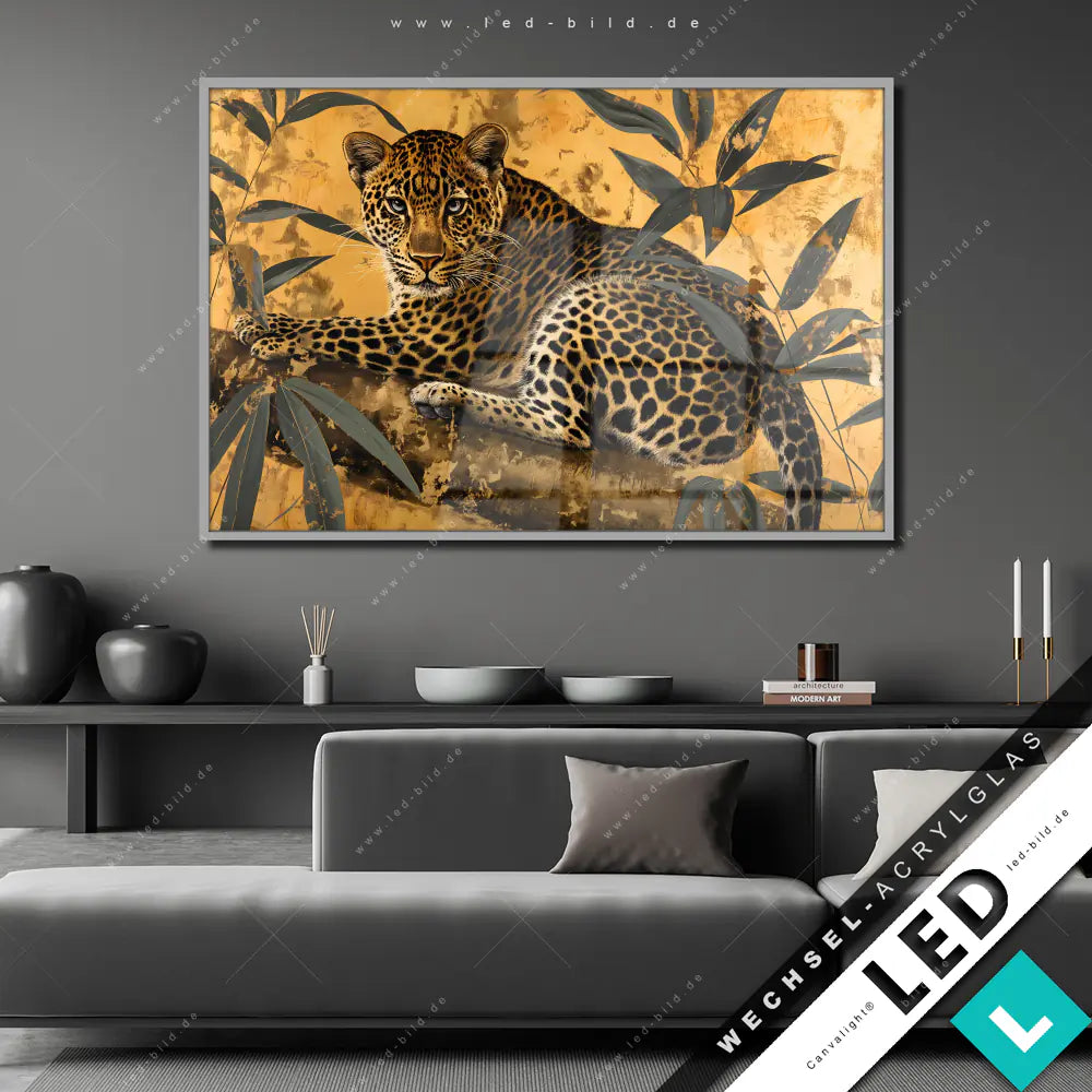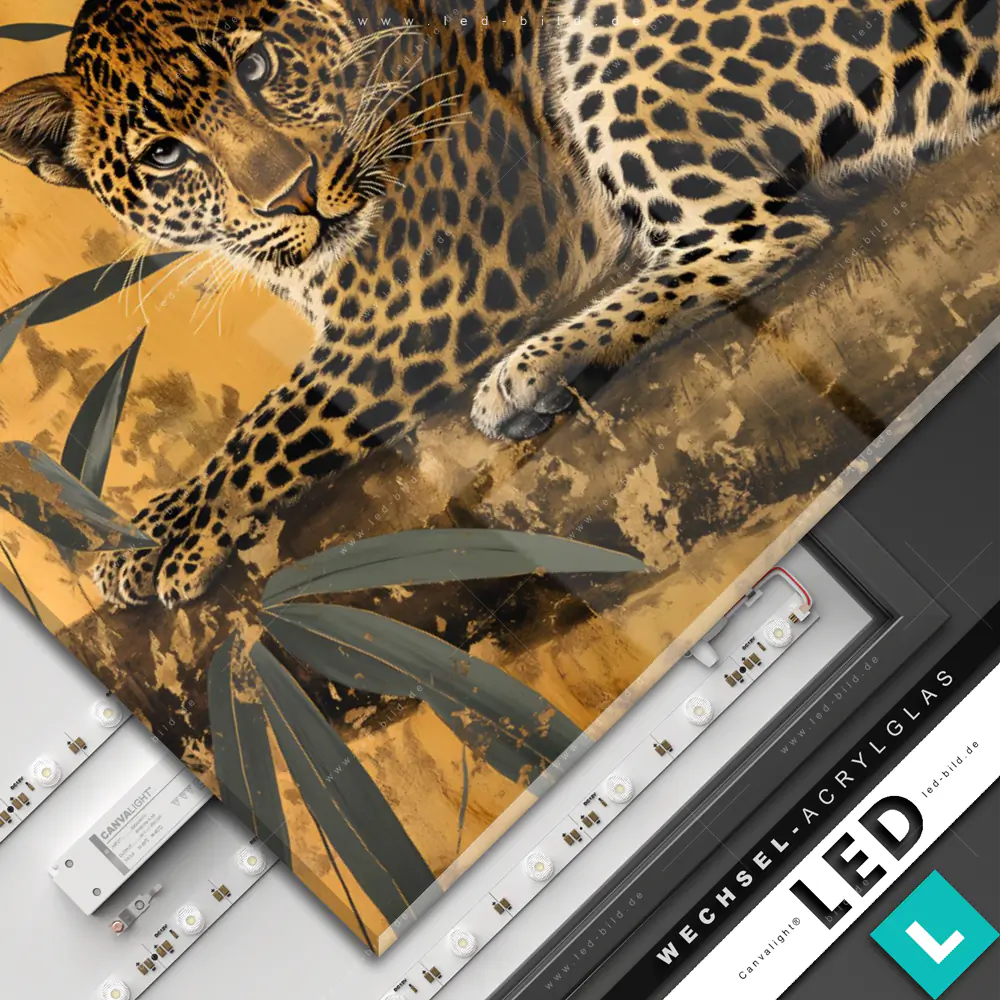 Canvalight® Wechsel-Acrylglas | Goldener Leopard - Imposanter Jäger | Querformat