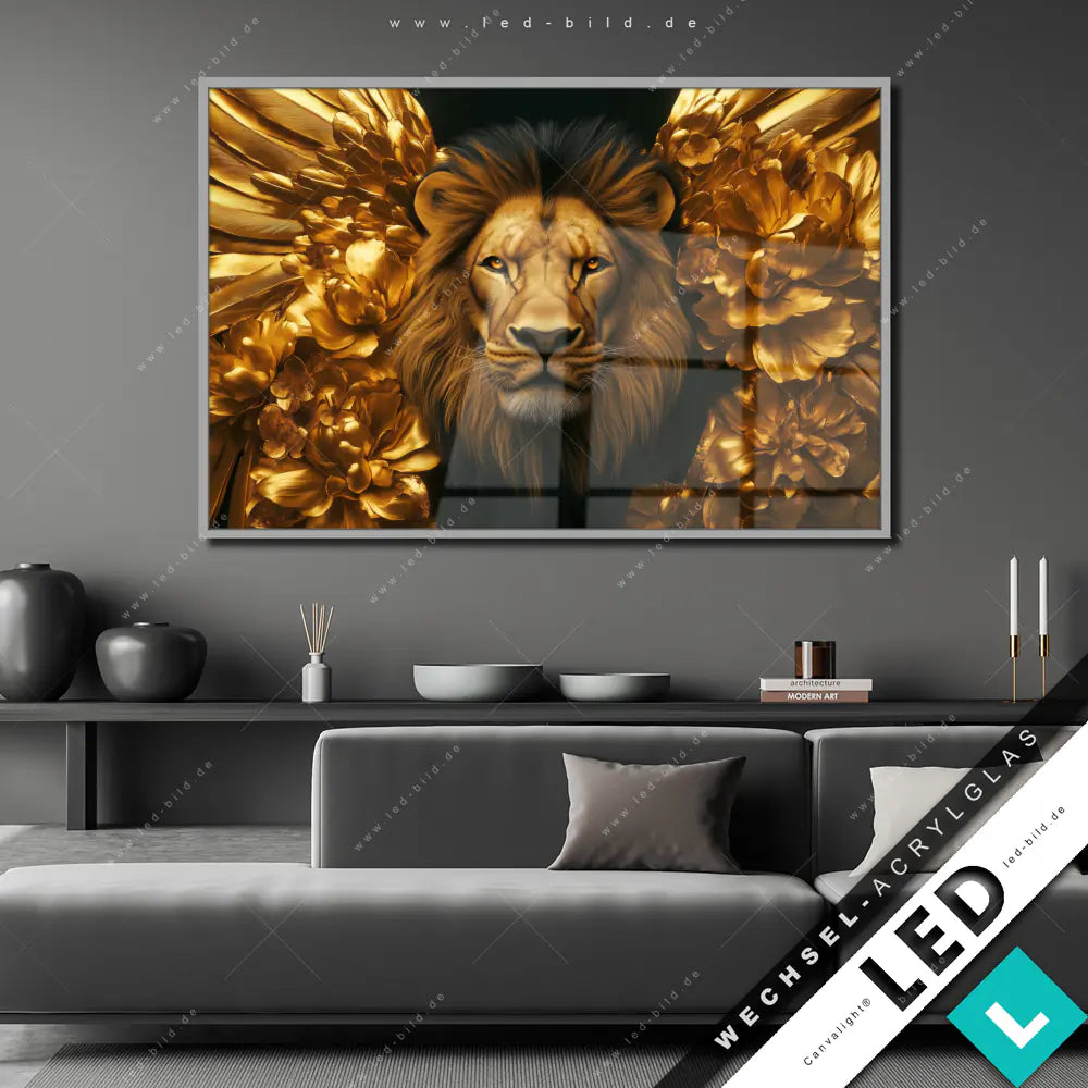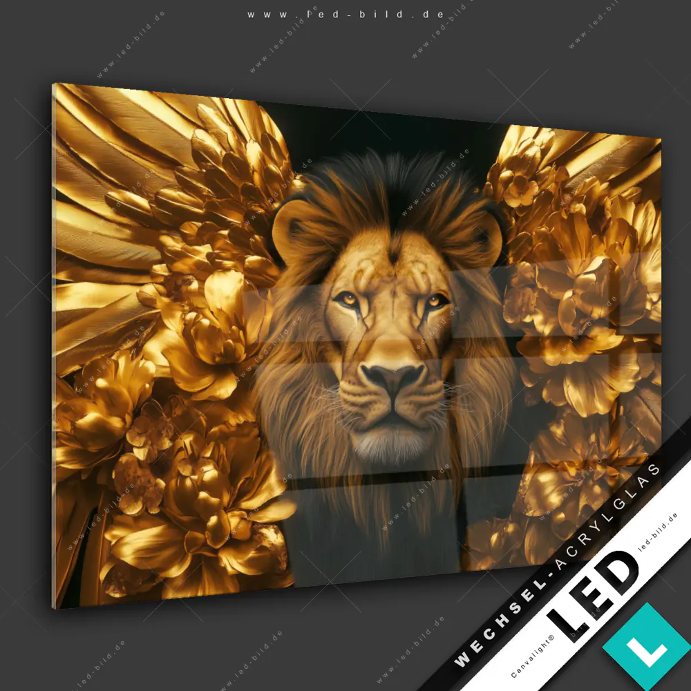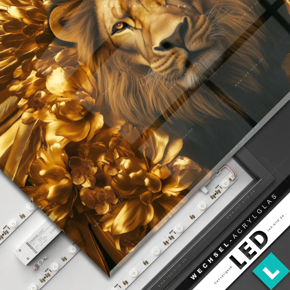 Canvalight® Wechsel-Acrylglas | Goldener Löwe | Querformat