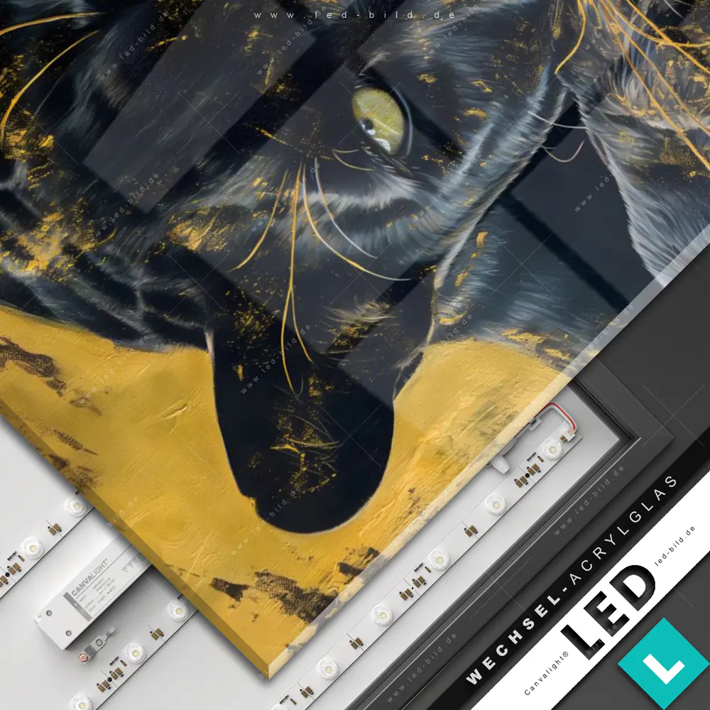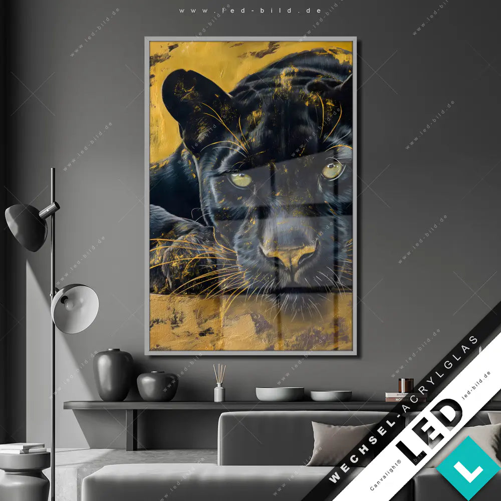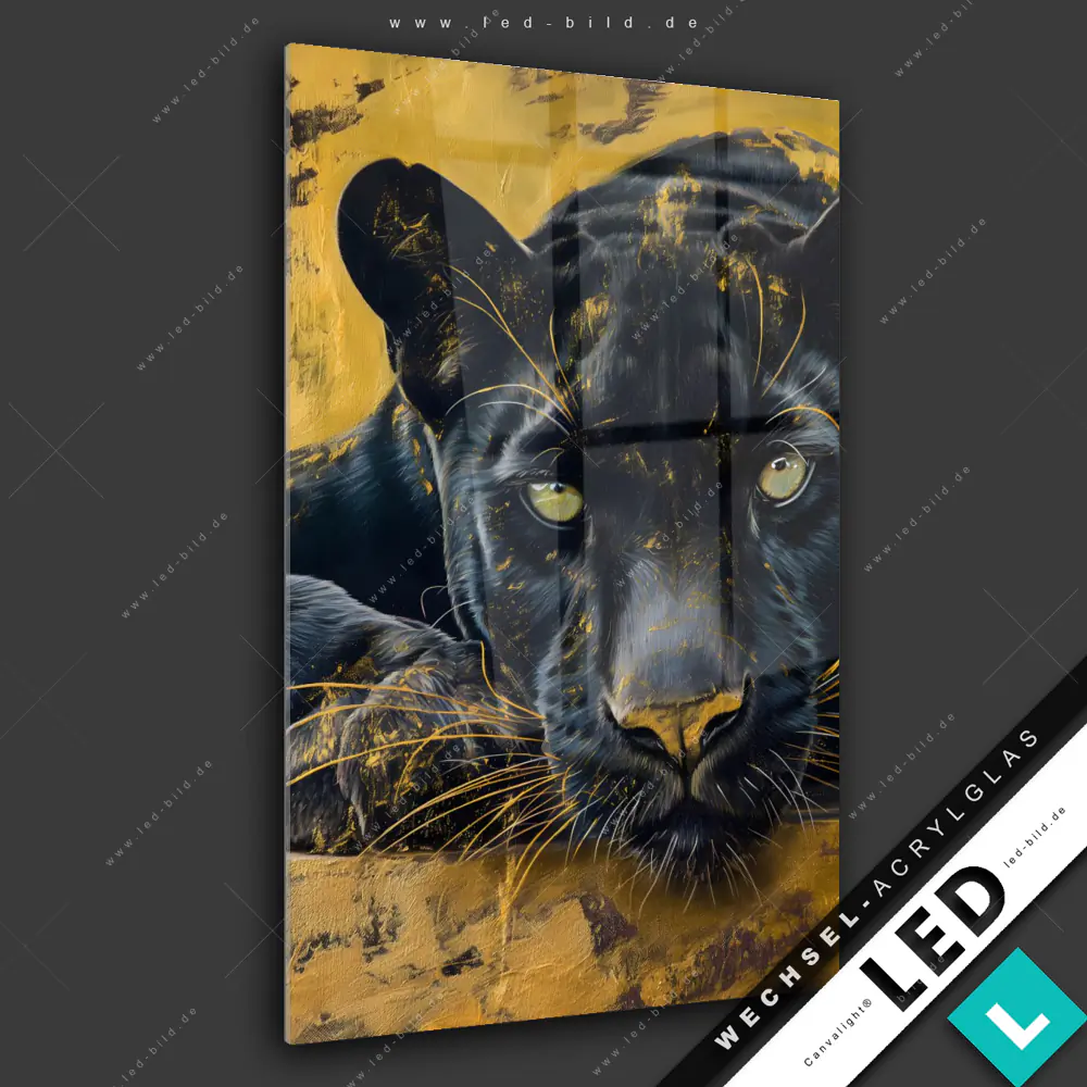 Canvalight® Wechsel-Acrylglas | Goldener Panther | Hochformat