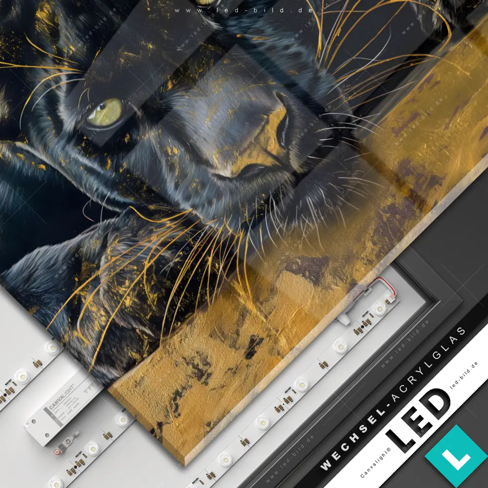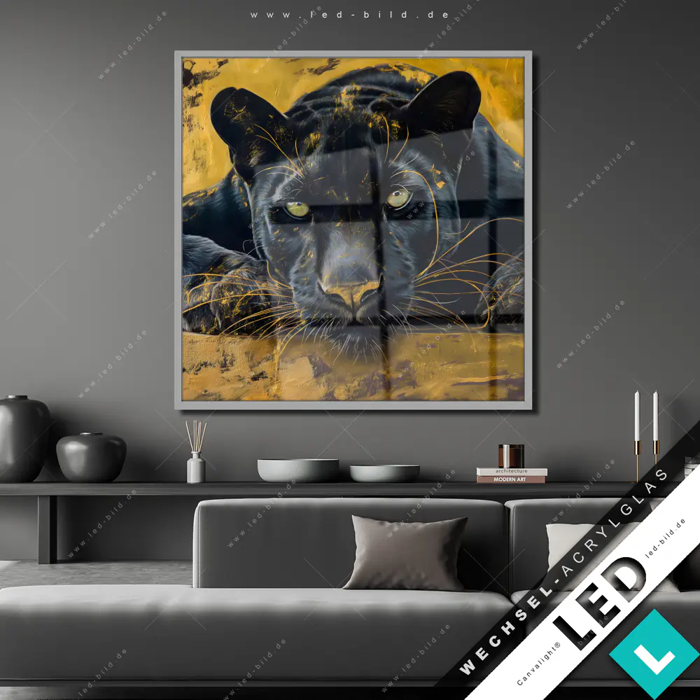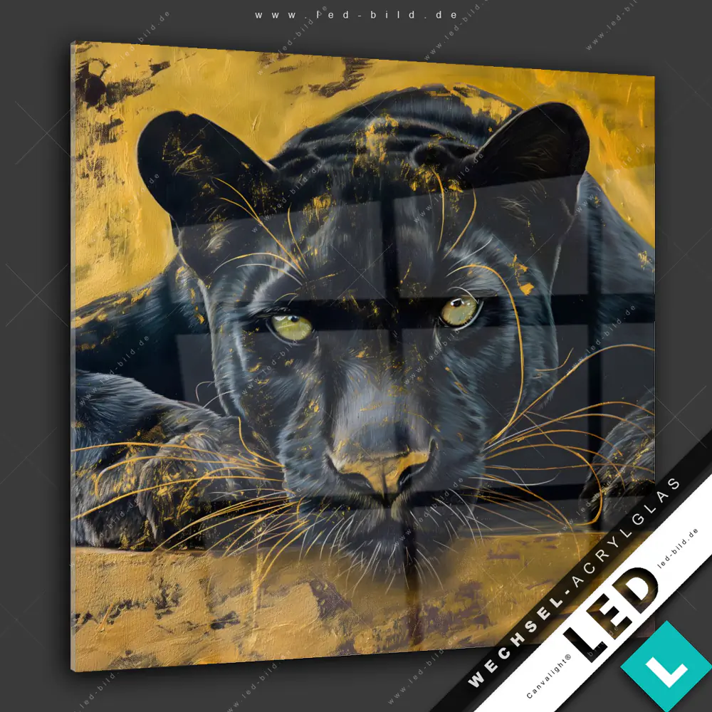 Canvalight® Wechsel-Acrylglas | Goldener Panther | Quadrat