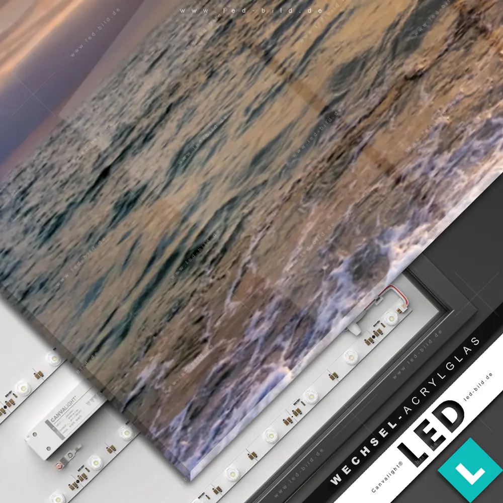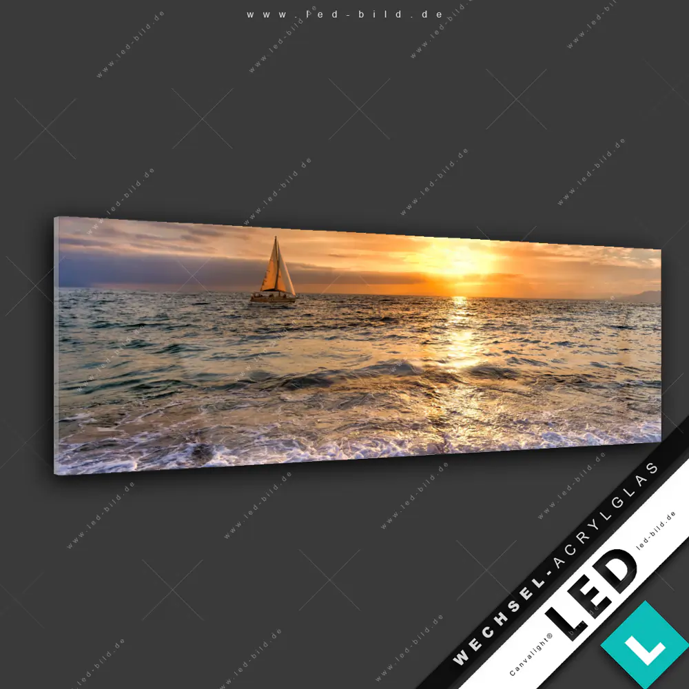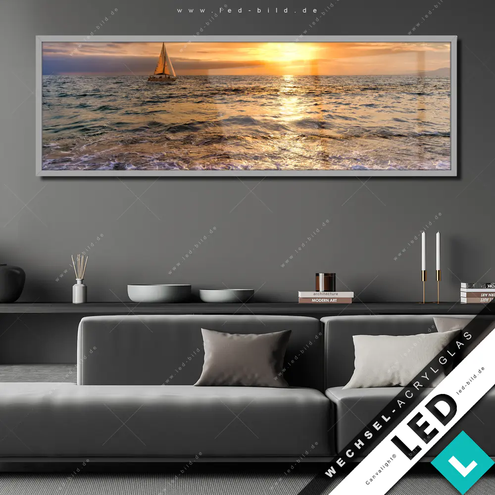 Canvalight® Wechsel-Acrylglas | Goldenes Licht am Meer | Panorama