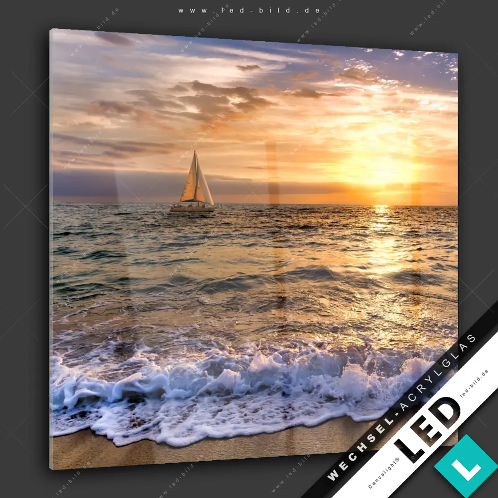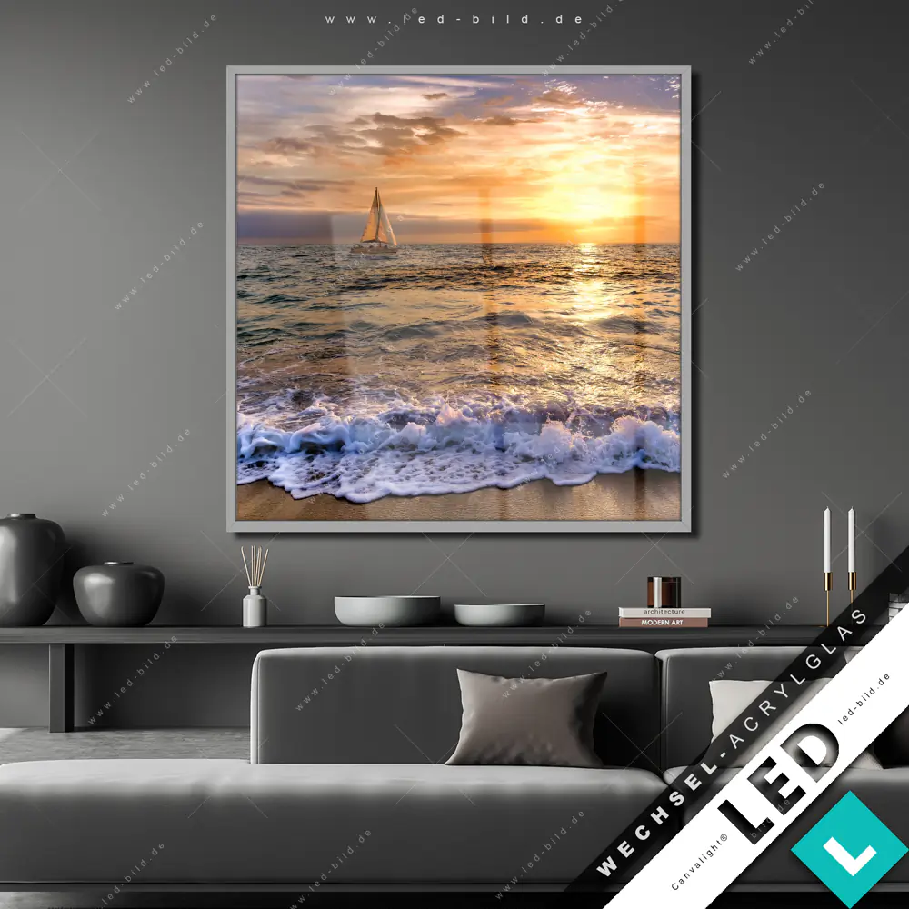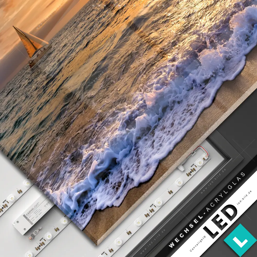 Canvalight® Wechsel-Acrylglas | Goldenes Licht am Meer | Quadrat