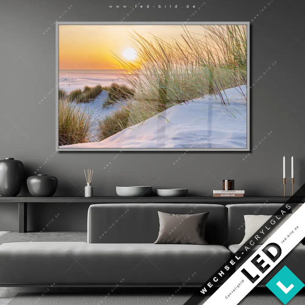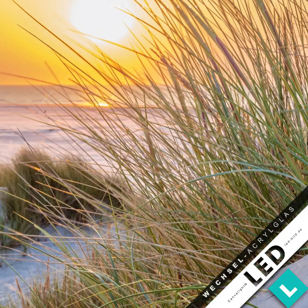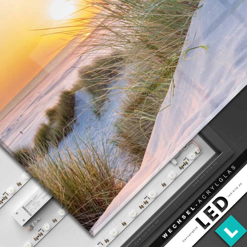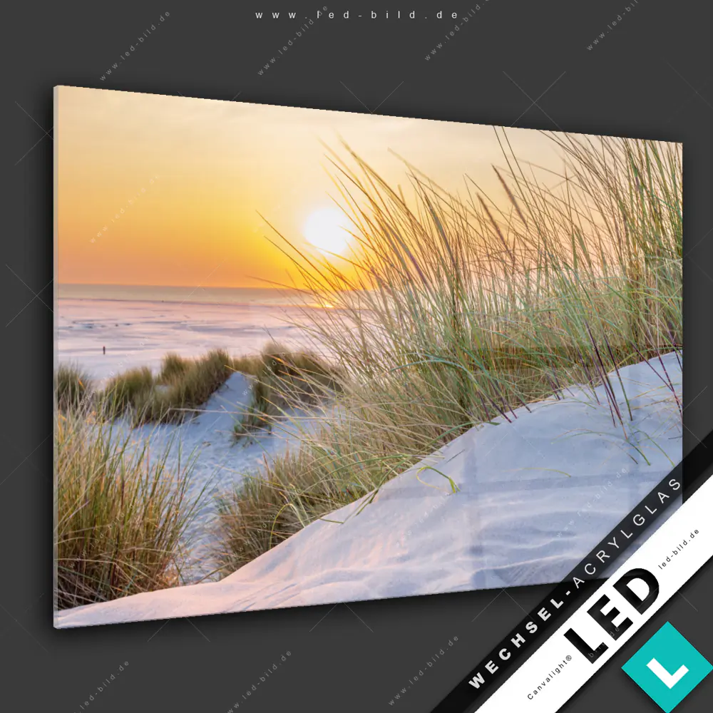 Canvalight® Wechsel-Acrylglas | Goldenes Licht über Sanddünen | Querformat