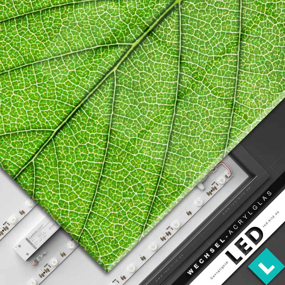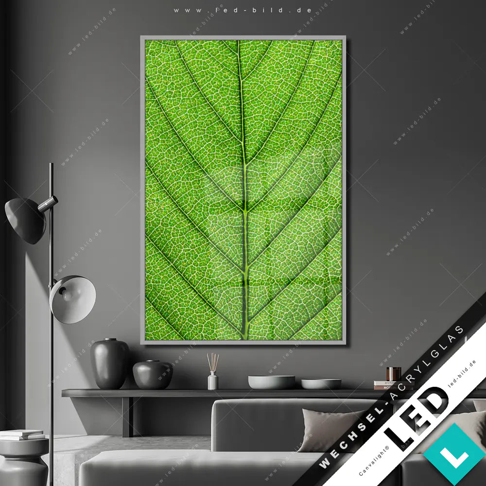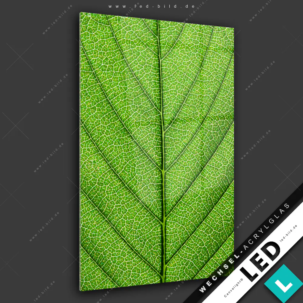 Canvalight® Wechsel-Acrylglas | Grüne Blattadern | Hochformat