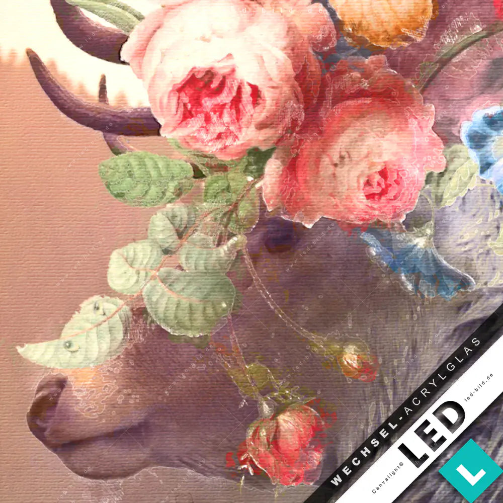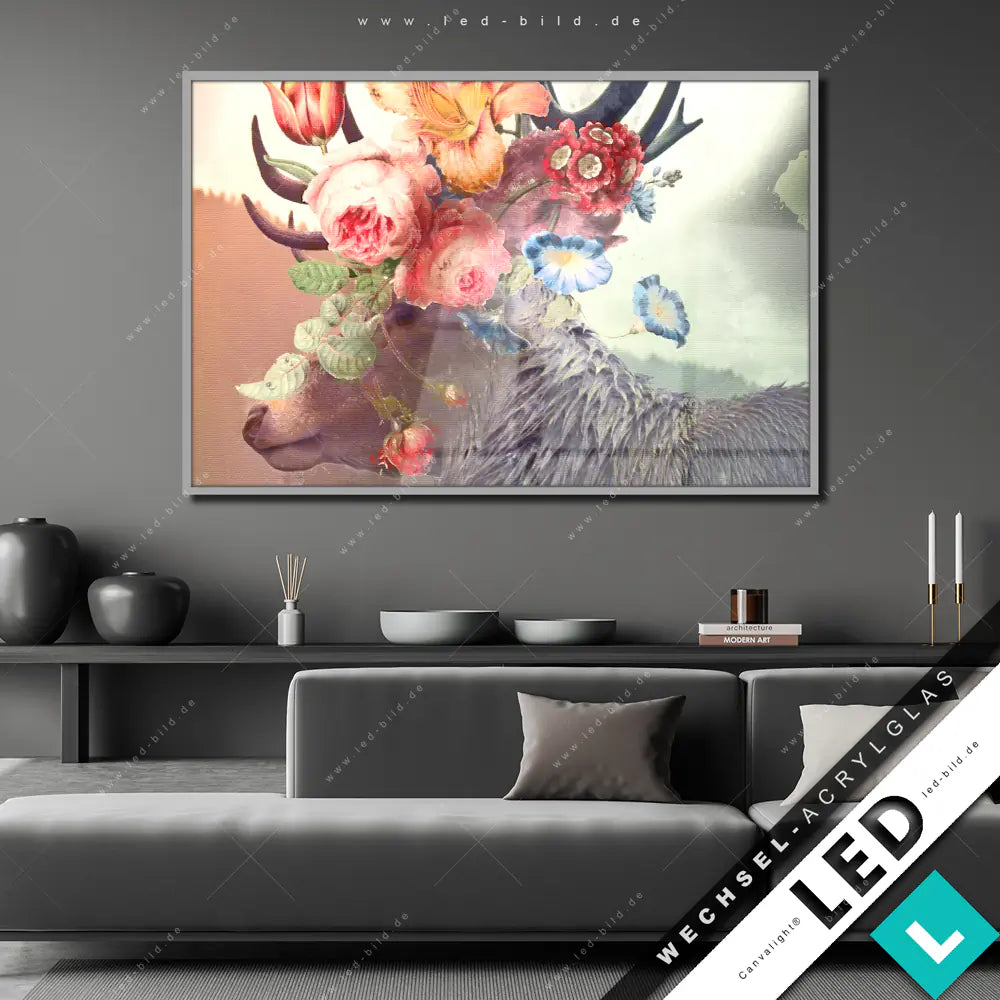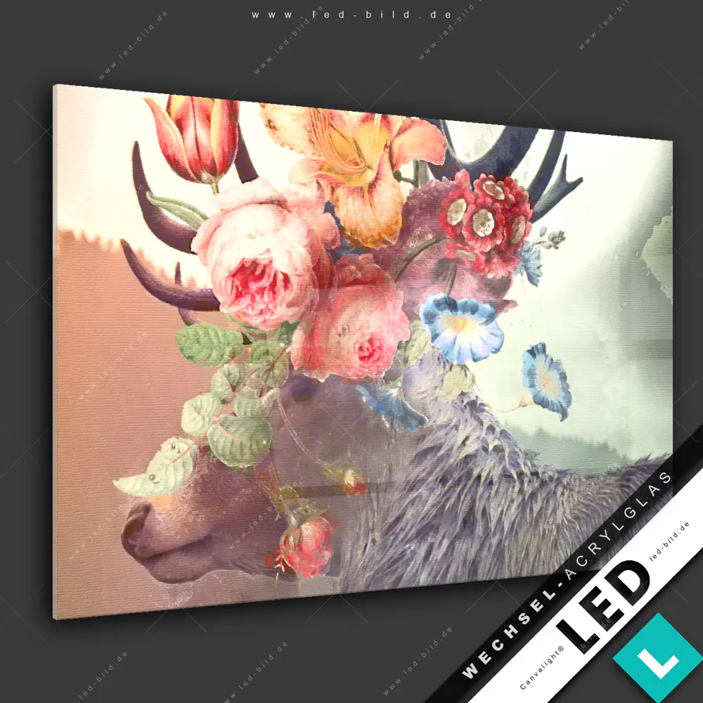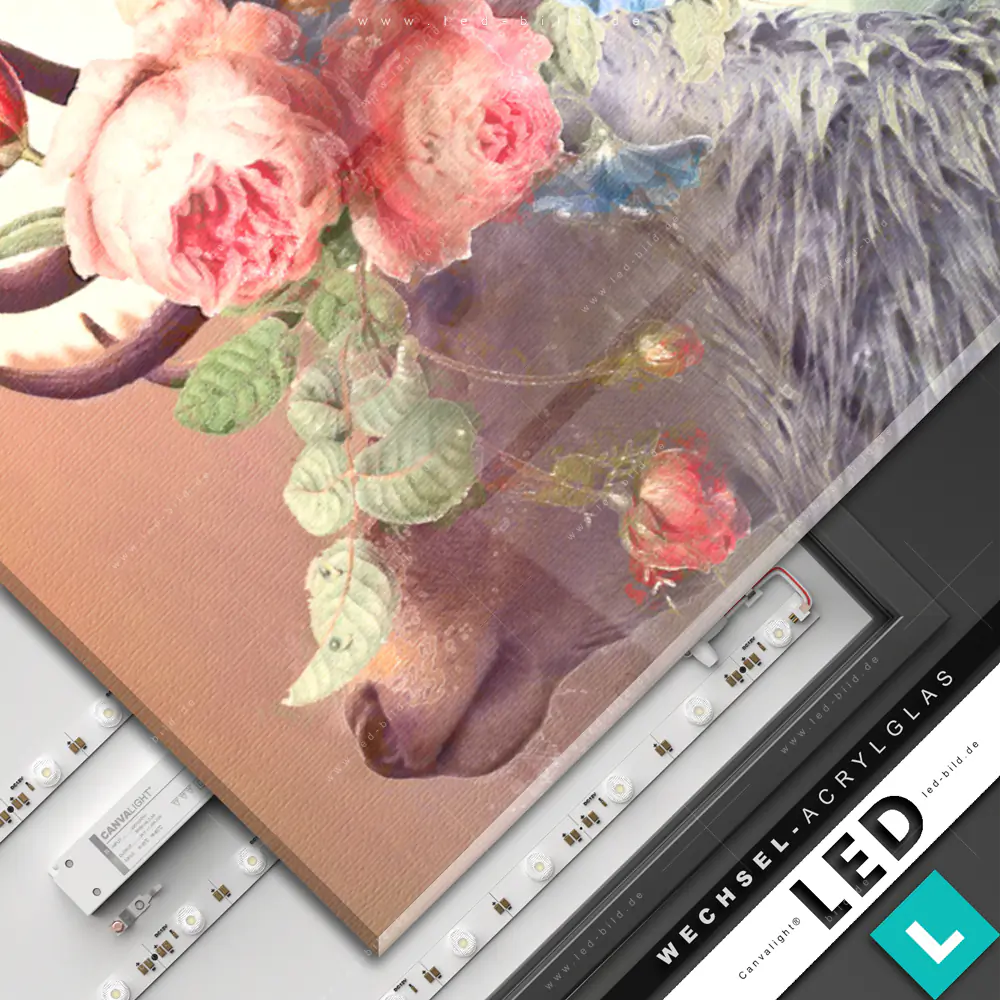 Canvalight® Wechsel-Acrylglas | Hirsch & Blumen | Querformat