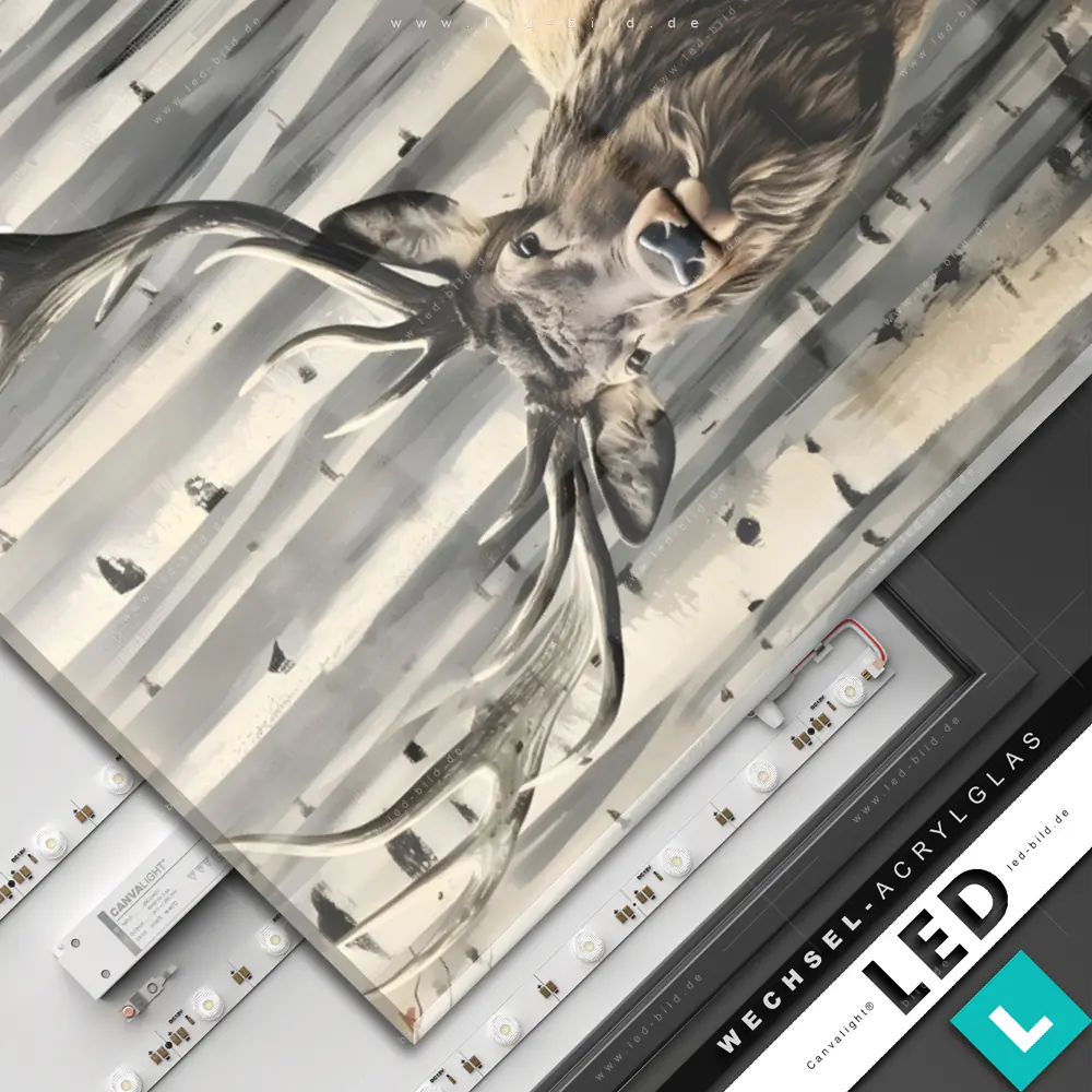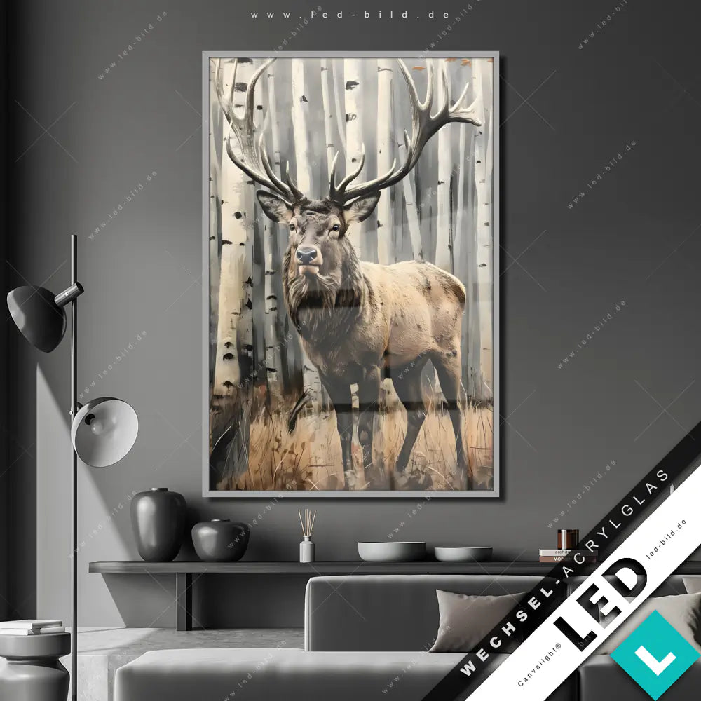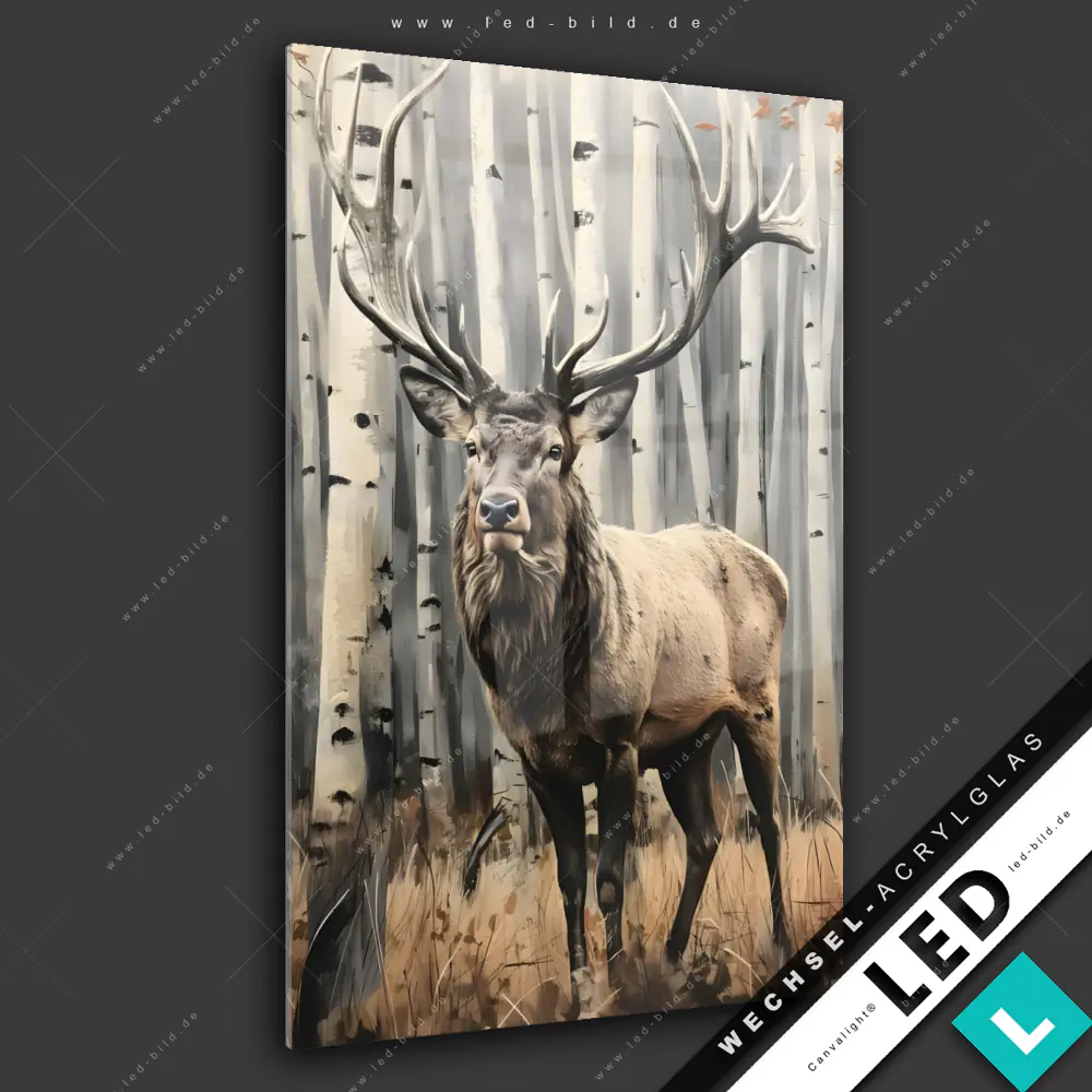 Canvalight® Wechsel-Acrylglas | Hirsch im Birkenwald | Hochformat