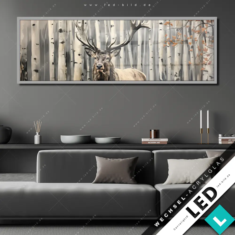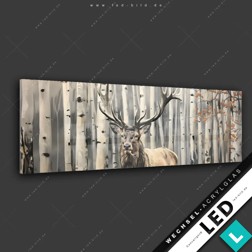 Canvalight® Wechsel-Acrylglas | Hirsch im Birkenwald | Panorama