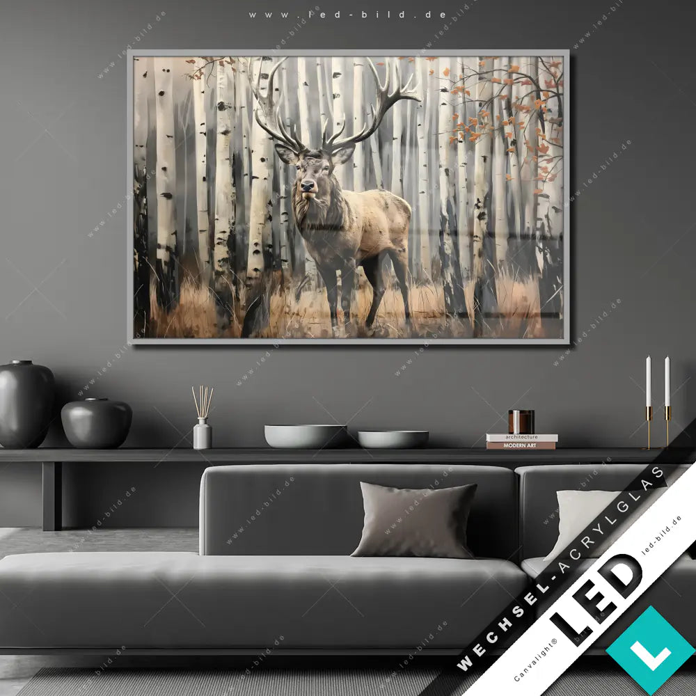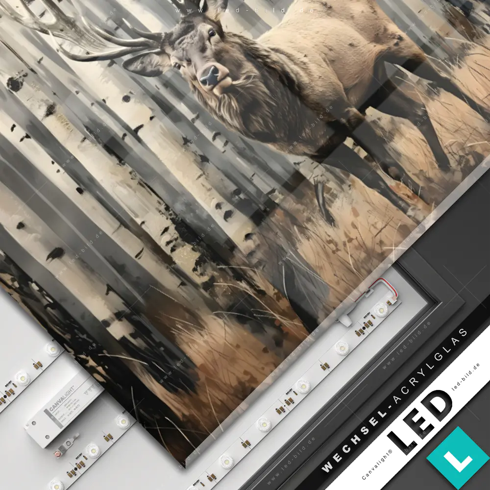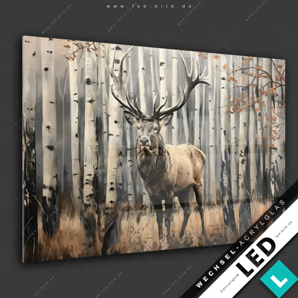 Canvalight® Wechsel-Acrylglas | Hirsch im Birkenwald | Querformat