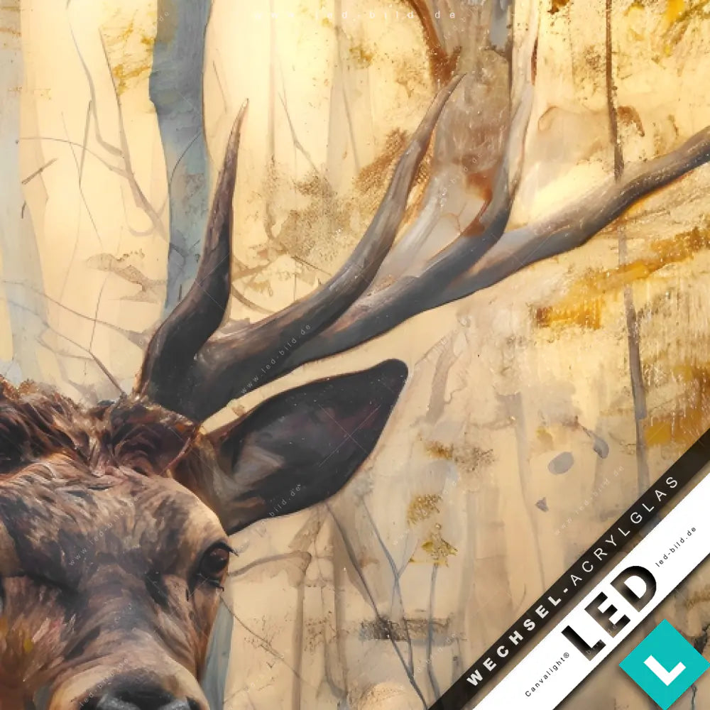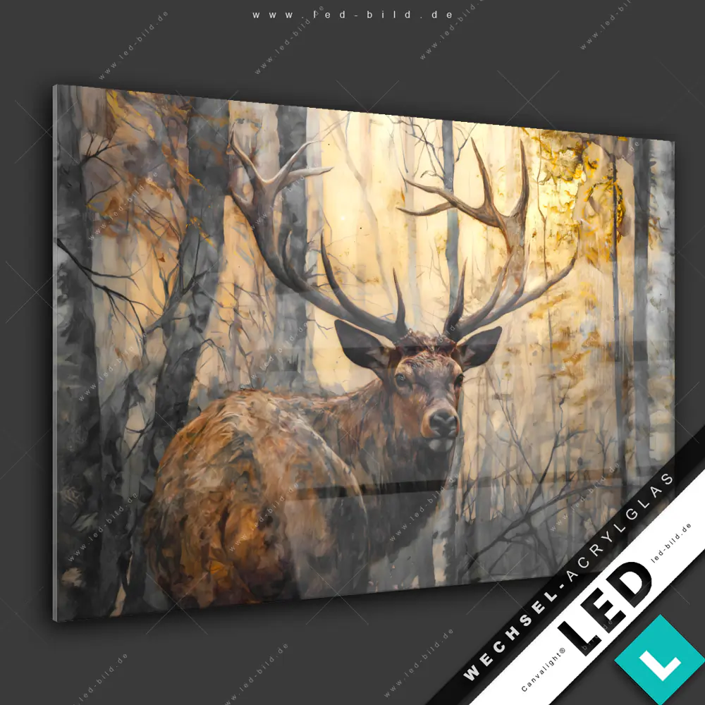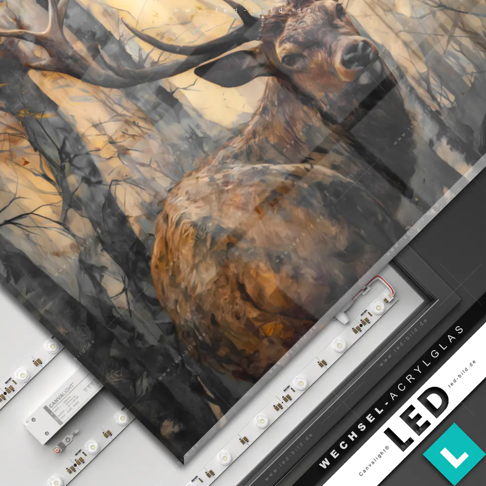 Canvalight® Wechsel-Acrylglas | Hirsch im Morgenlicht | Querformat